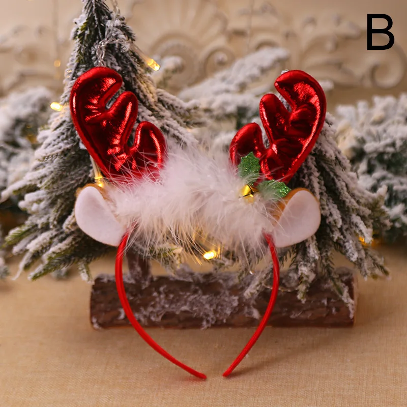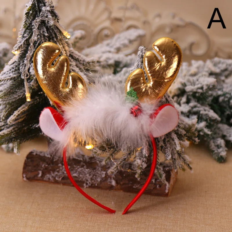 Повязка на голову для детей и взрослых, рождественские украшения для вечевечерние, обруч на голову с рогами, орнамент с оленями