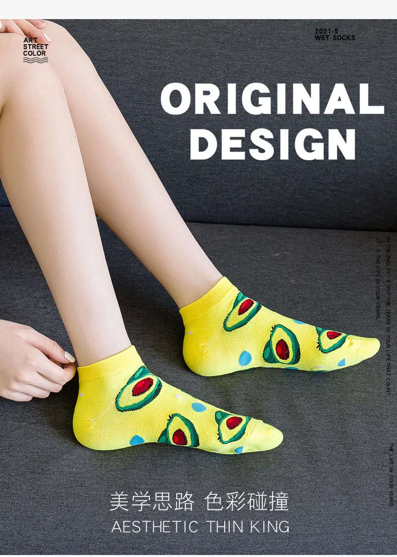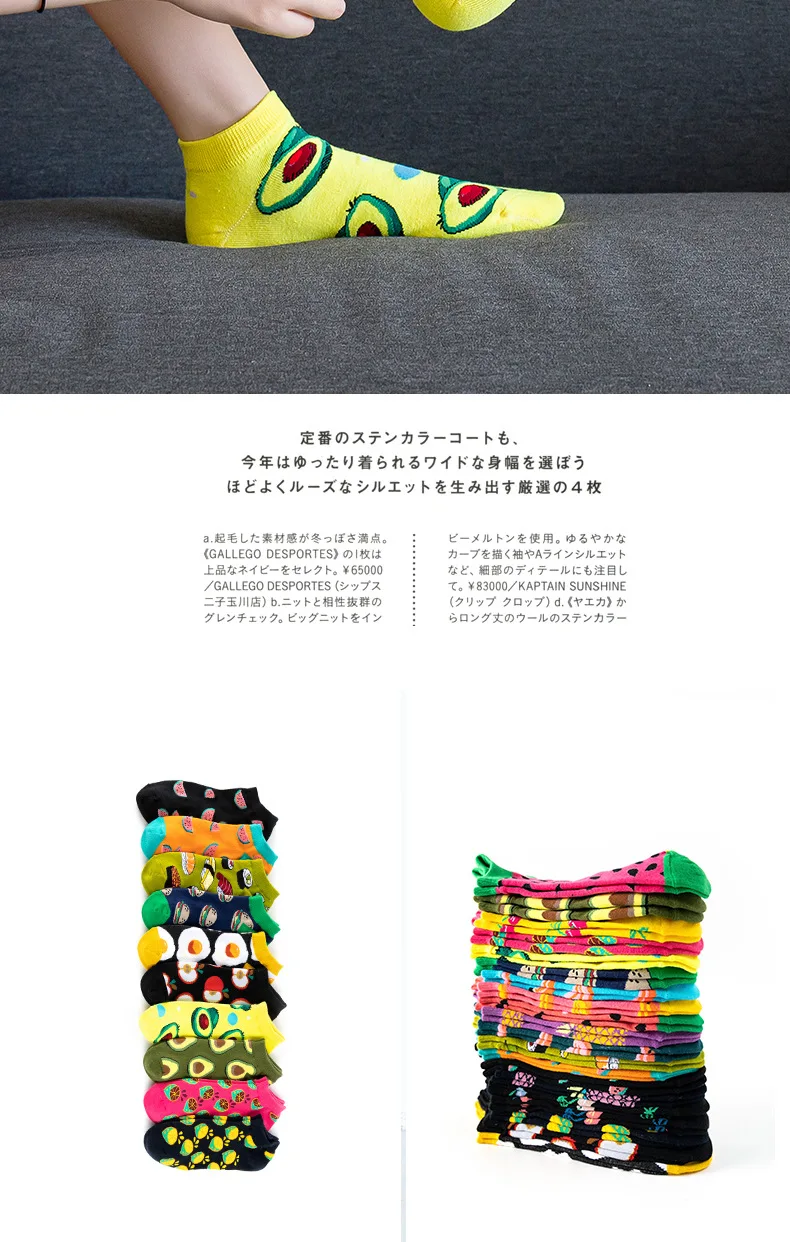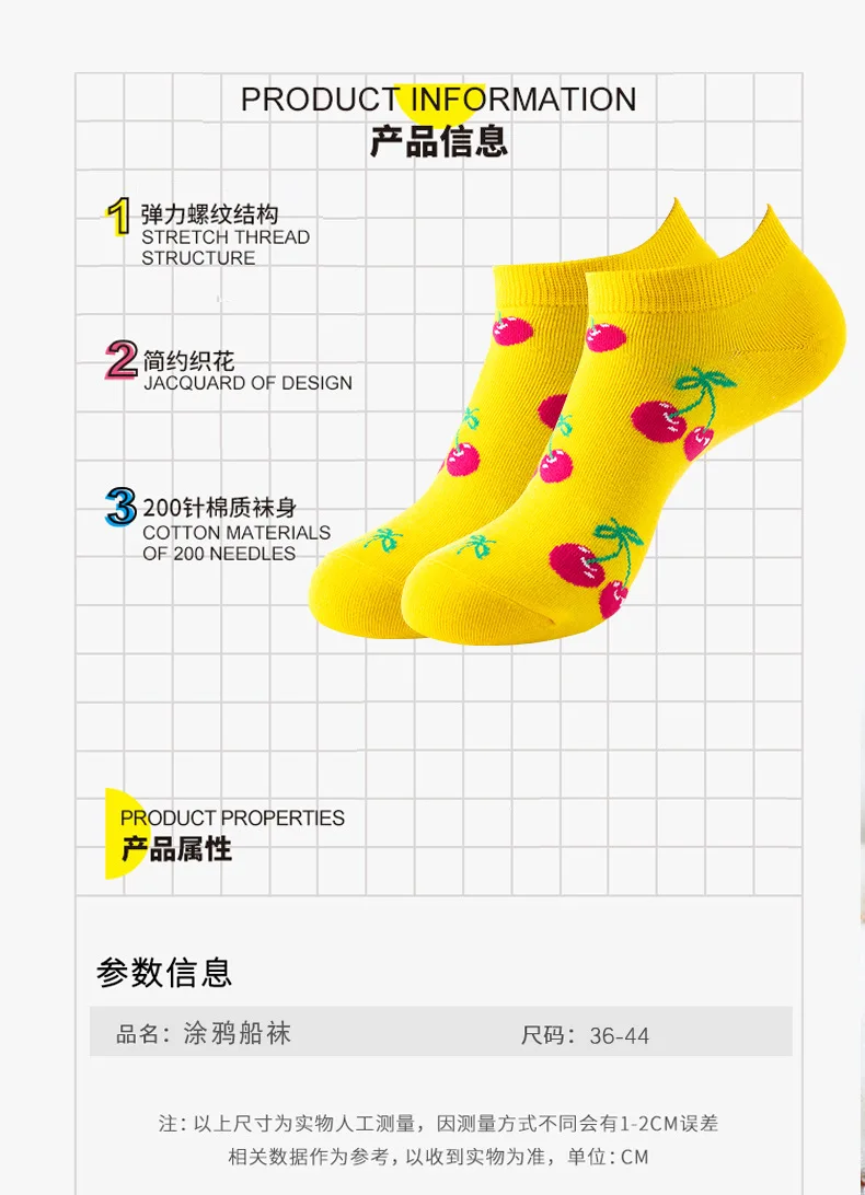 12 см, хлопковые носки до щиколотки, забавные, с фруктами, граффити...
