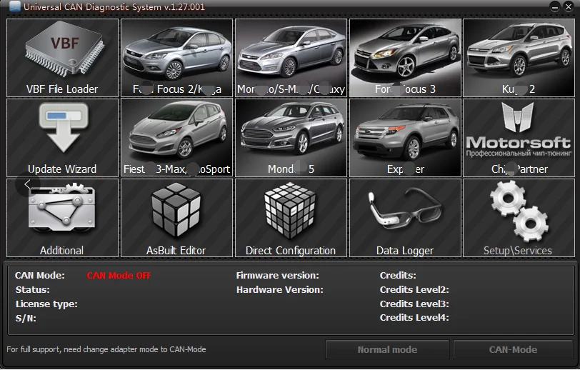 Полный лицензионный адаптер UCDS: Полный режим активации, доступ к существующим разделам программного обеспечения, таким как: VBF погрузчик, Мастер обновления и прямой конфигурации.