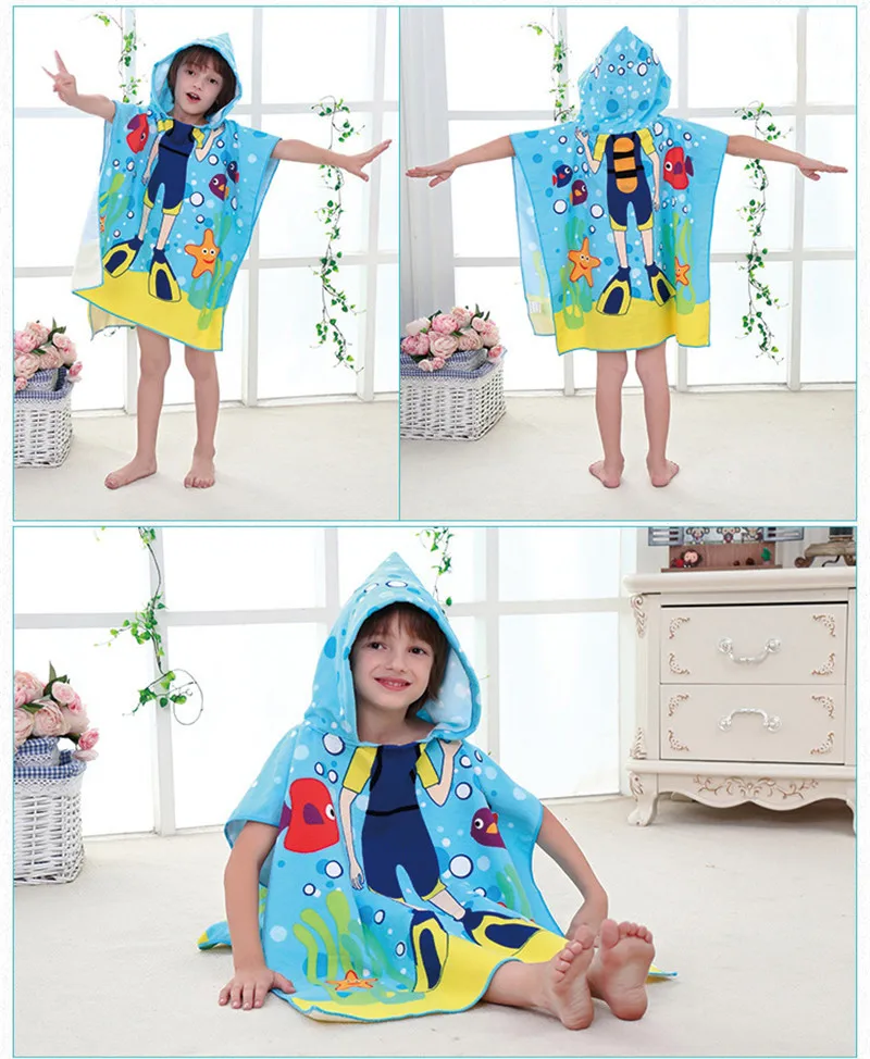 Детское банное пончо из микрофибры, летнее пляжное пончо для мальчиков и девочек, халат, полотенце для бассейна, пляжное полотенце