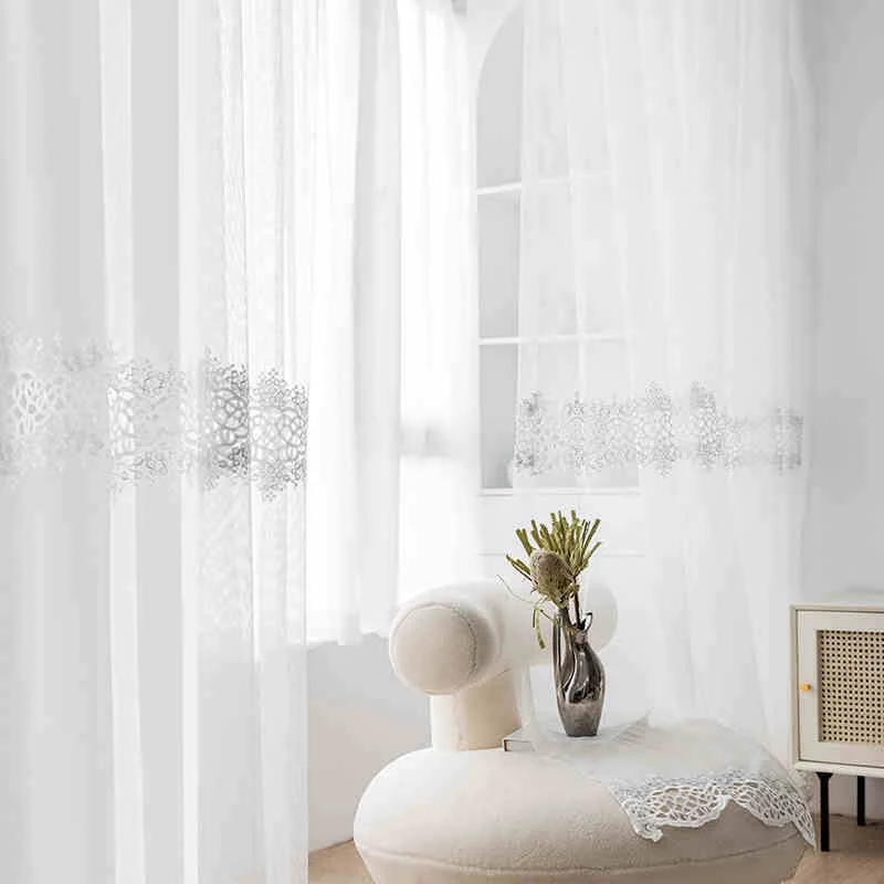 Белые прозрачные вуали с вышивкой, занавески для спальни, современные тюлевые оконные шторы для гостиной, кружевные декоративные драпированные двери