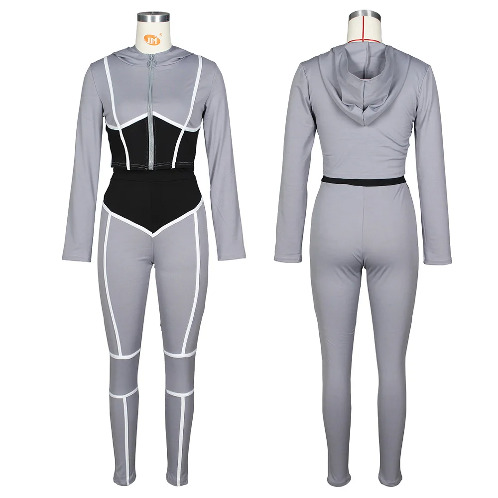 Женский спортивный костюм с капюшоном, повседневный укороченный топ на молнии с длинным рукавом + Весенняя спортивная одежда длинные узкие штаны, наряд с капюшоном
