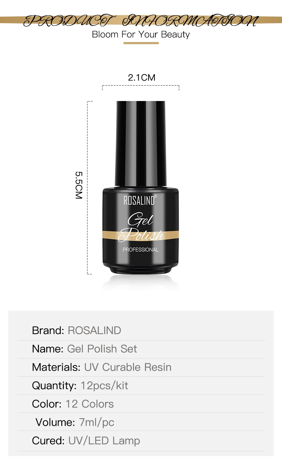 ROSALIND 7 мл Soak Off Гель-лак яркий для дизайна ногтей LED/UV лампа