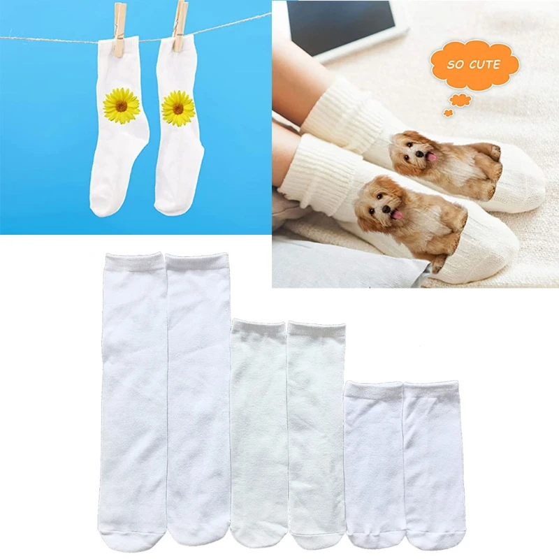 5 пар сублимационные чистые носки двухсторонний принт теплопередача Tubbe носки для подростков взрослых DIY персонализированные носки