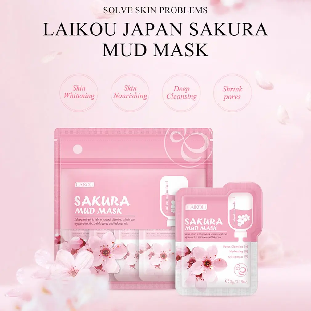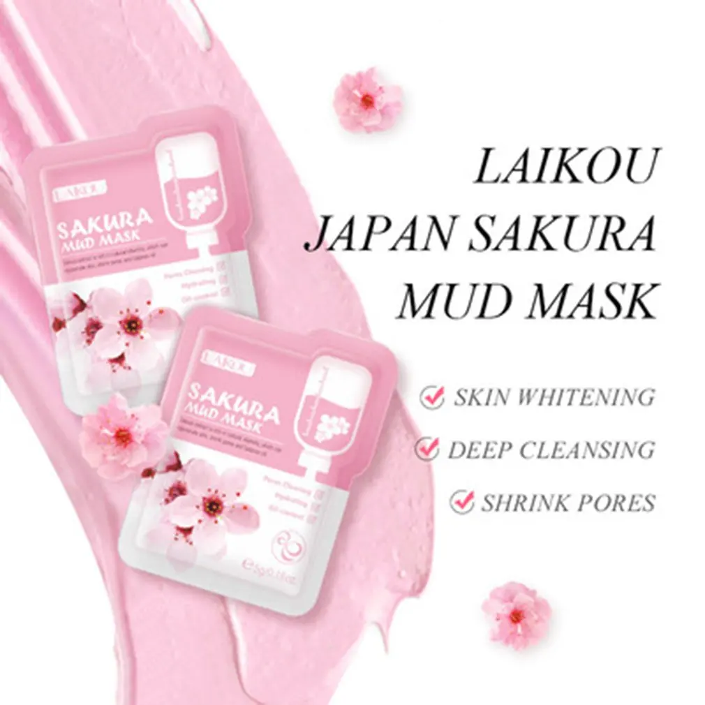 Грязевая маска Sakura, глиняная маска для очищения кожи, маска для контроля жирности лица, очищающее средство для лица, увлажняющее лечение лица