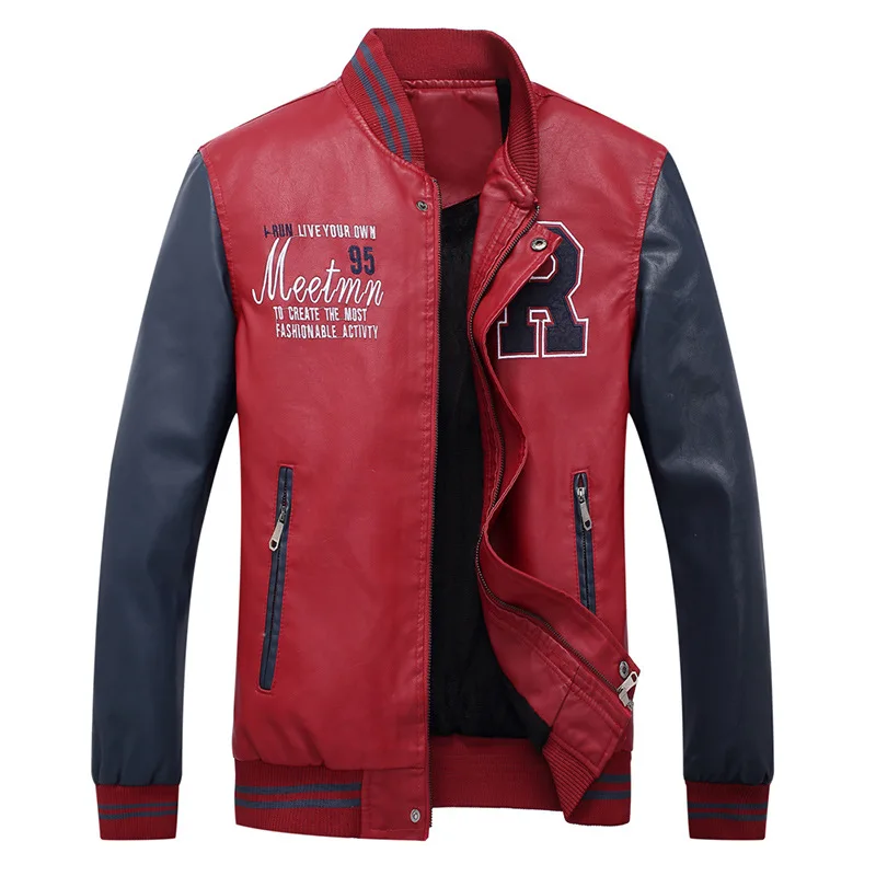 Мужская бейсбольная куртка, облегающая куртка из искусственной кожи...
