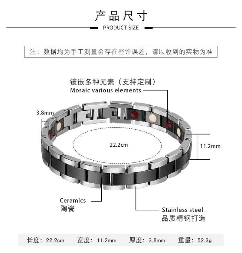 KeywordsHigh Quality Eco Handmade Wholesale Custom Mens Steel Ceramic Bracelet