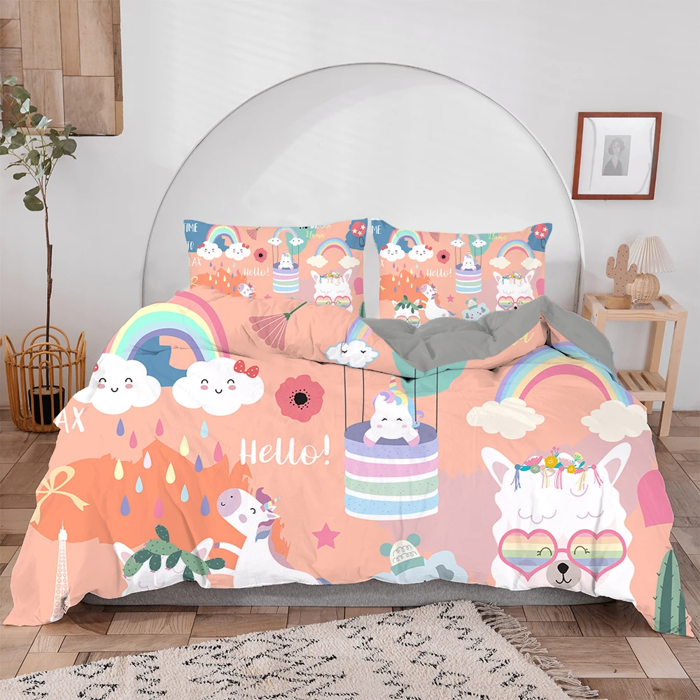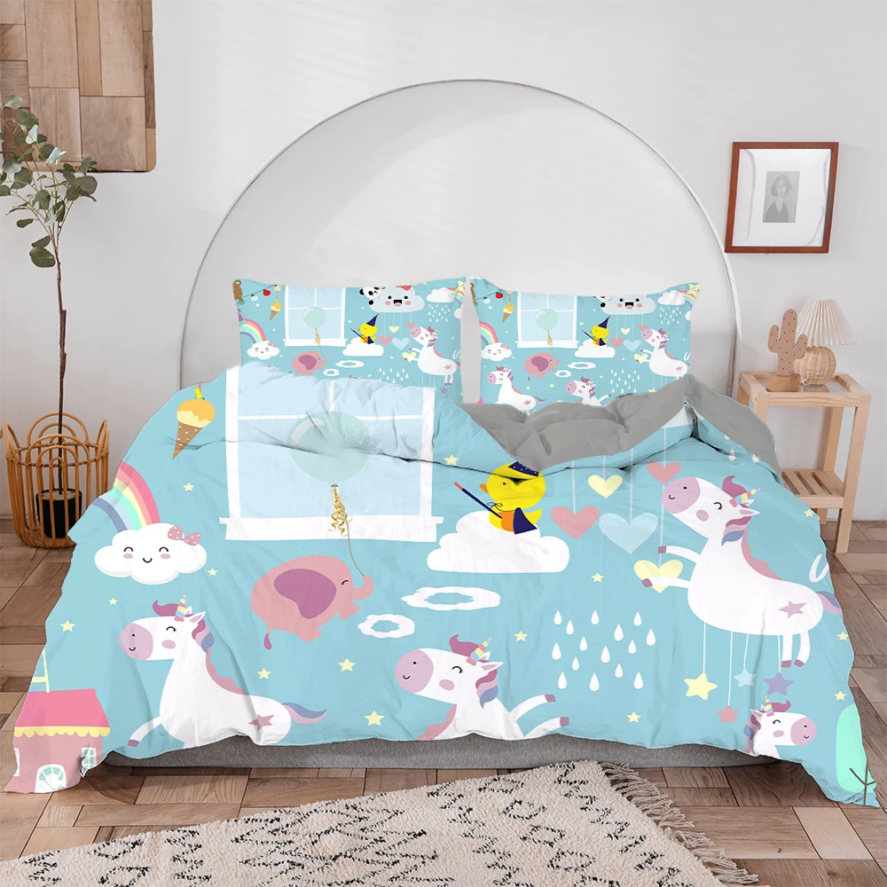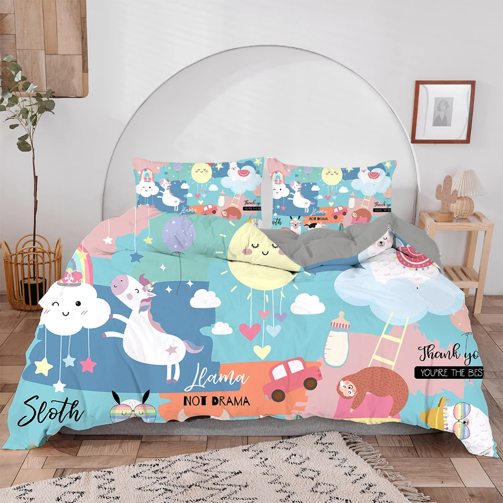Комплект постельного белья с красочным принтом в виде радужного единорога, 90, размер QueenKing, пододеяльник в скандинавском стиле, 240x220, для детей, девочек, дома
