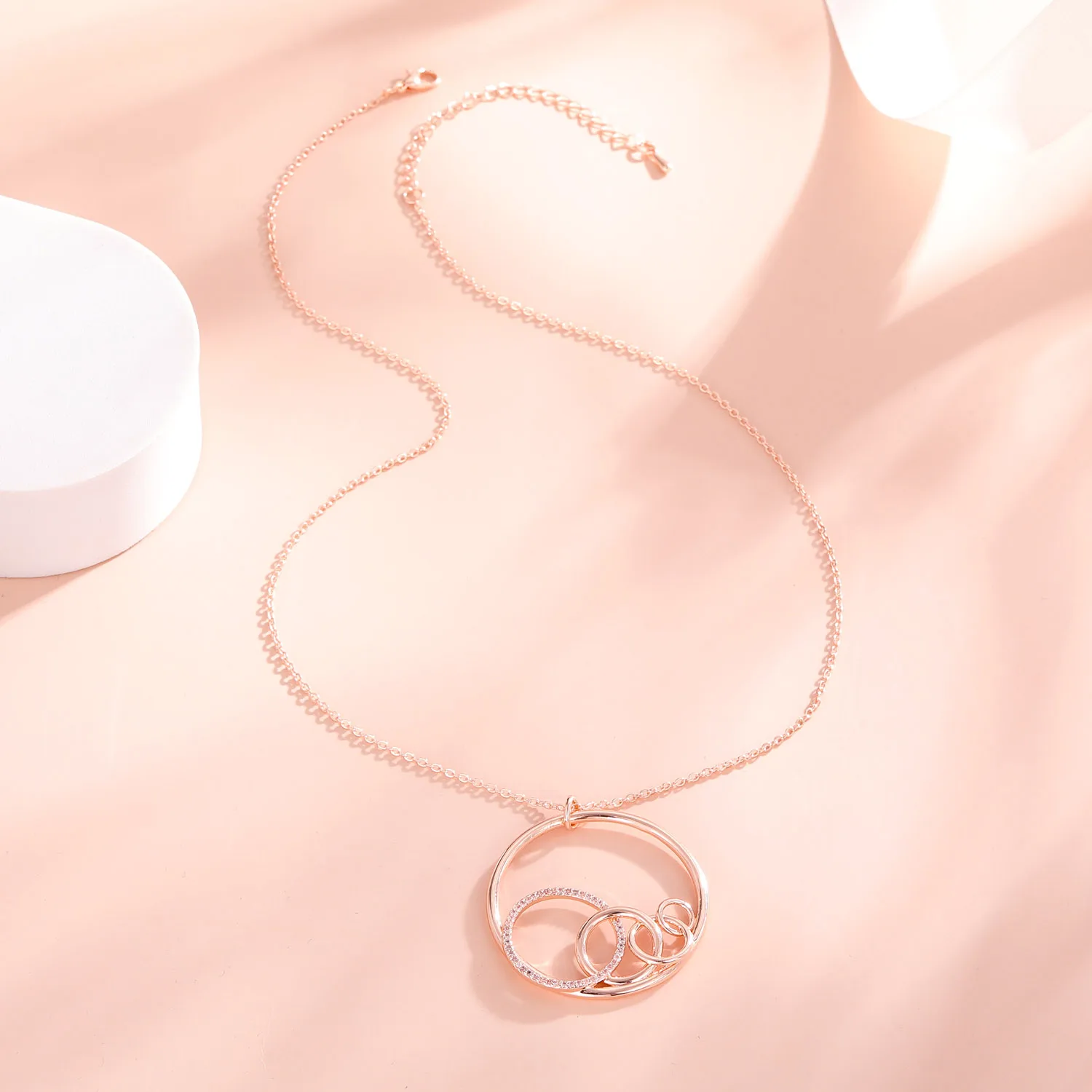 Розовое золото, круг сверкающего ожерелья из стерлингового серебра ...