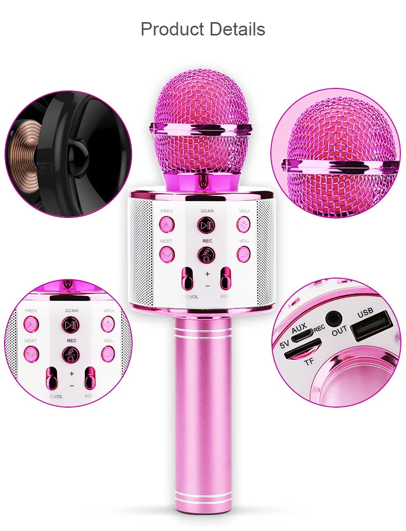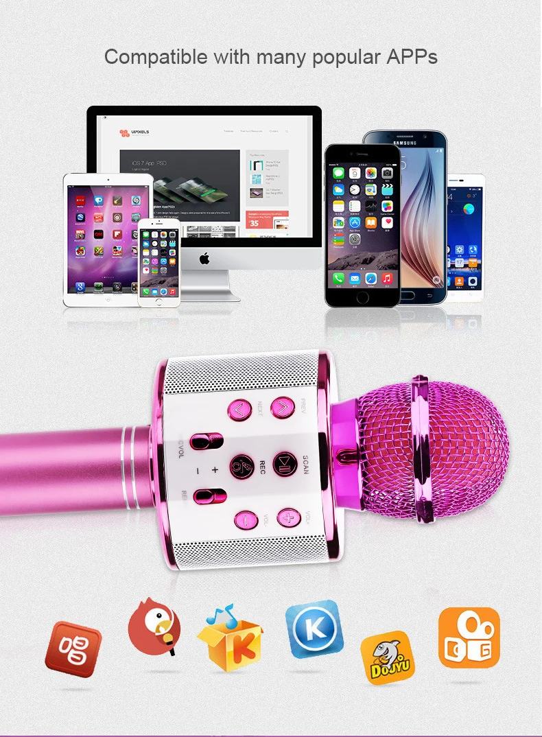 Стильный беспроводной микрофон для караоке --- этот микрофон для караоке работает профессионально, он изготовлен из АБС-пластика и алюминиевого сплава, стильный и прочный, использует новейшие беспроводные технологии Bluetooth, микрофон с технологией шумоподавления. Две высококачественные внутренние магнитные колонки, которые помогут вам найти идеальный голос, давая вам отличное качество звукаВысокая Совместимость --- наших караоке микрофоны станет отличным подарком для гостей отеля каких-либо вечерние и созданы для того, чтобы сделать вас звездой любую сцену. Микрофон DIMY Совместим с любым устройством с поддержкой Bluetooth, включая все смартфоны и планшеты на базе iOS и Android.Три способа подключения-подключение по Bluetooth, проводное usb-соединение и подключение к tf-карте. Вам просто нужно подключить телефон к кабелю или Bluetooth, а затем открыть приложение для пения на вашем телефоне. Встроенный аудио и яркий звуковой эффект позволяют наслаждаться прослушиванием и пением в любое время и в любом месте. Идеально подходит для пения на KTV, пения на собраниях, пения как семьи, пения на дороге, стерео автомобиля и т. Д.Простота в использовании --- многофункциональные кнопки могут регулировать музыку, громкость и PA / R. Бесплатно переключать предыдущий и следующий режим песни. Регулируемый эффект длины может принести супер объемный звук с захватывающим наслаждением. И usb-порт позволяет подключать USB и конвертировать этот волшебный кусок в MP3 и воспроизводить его напрямую.Лучшие подарки Eprestar --- легкий портативный микрофон для караоке небольшого размера и легко держать, приятное на ощупь подходит для взрослых и детей в возрасте 4 лет, чтобы практиковать и поделиться своими любимыми песни в приложении. Музыка (YouTube, Spotify и т. д.), это отличный подарок на день рождения или фестиваль для ваших детей, друзей или семьи.
