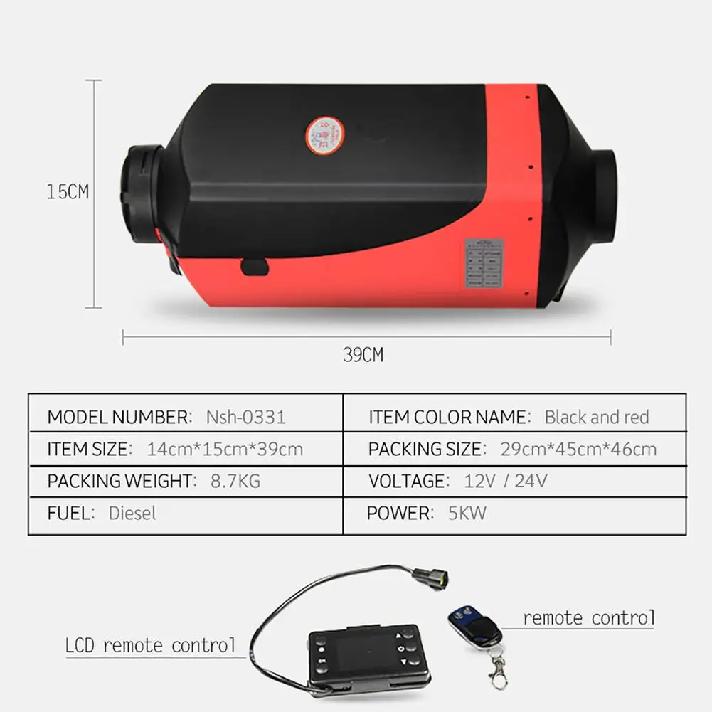 Автомобильный обогреватель, воздушный отопительный прибор для авто, 5 кВт, 12 В, с дистанционным управлением