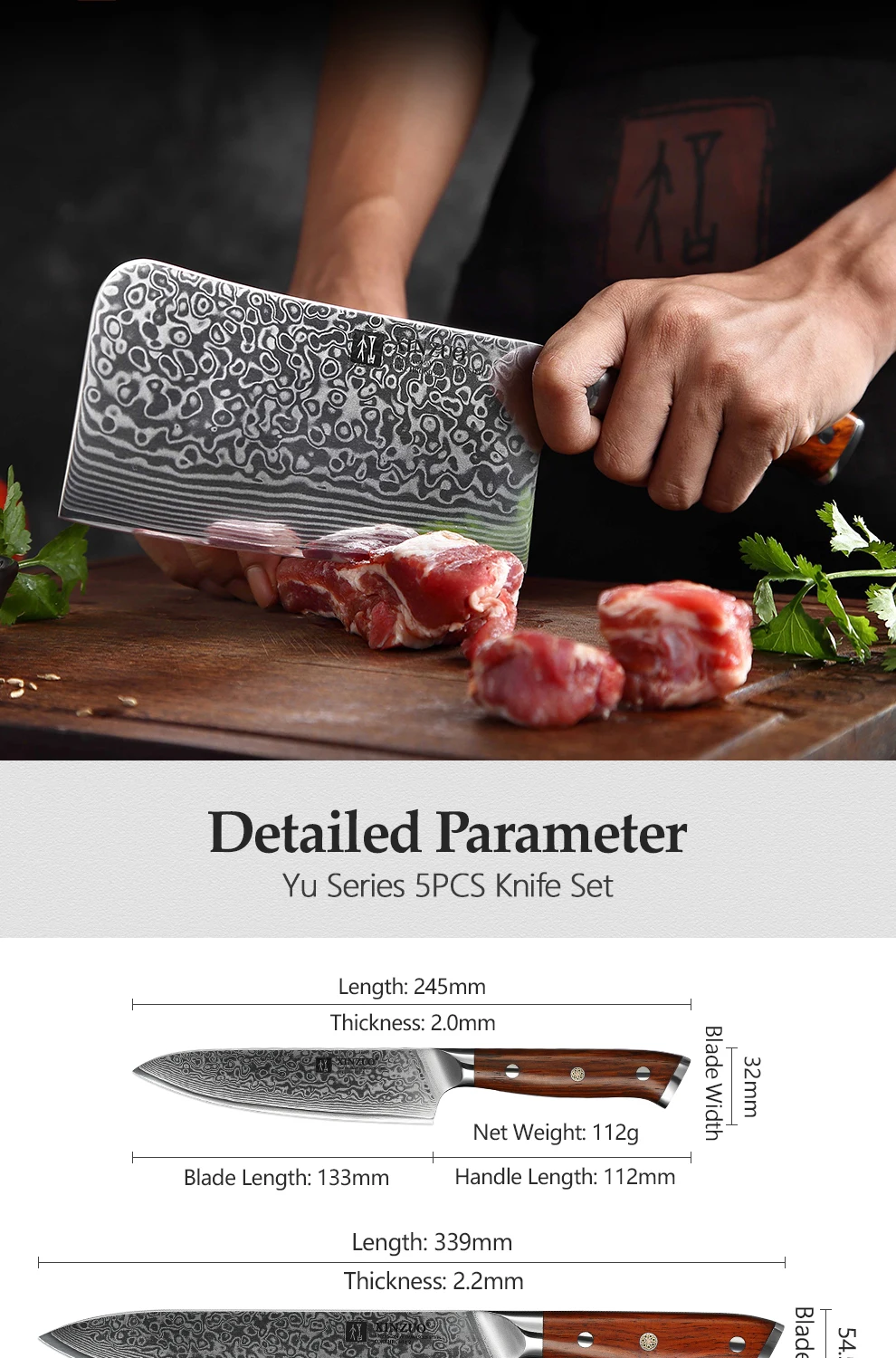 Набор ножей из дамасской стали XINZUO Yu серии 5 шт.