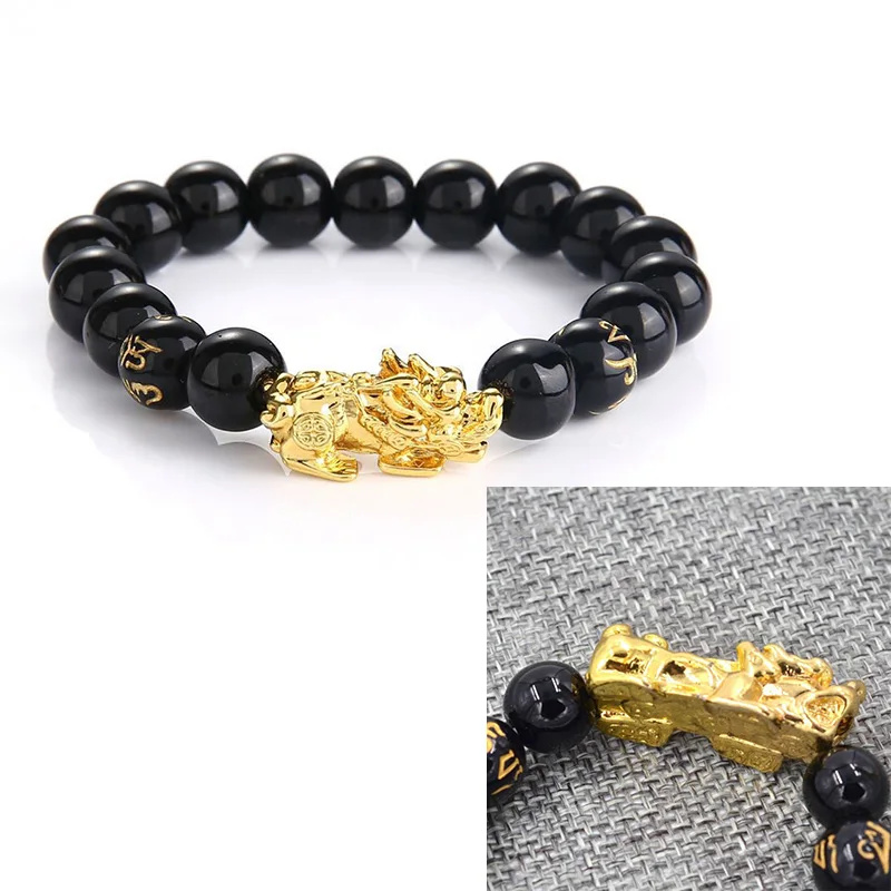 Браслет фэн-шуй из обсидиана с камнями и бусинами для мужчин и женщин, украшение под золото, черный, пиксиу, богатство и удачу, для женщин и мужчин