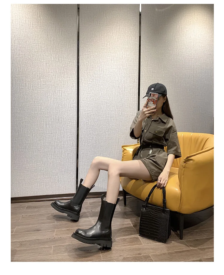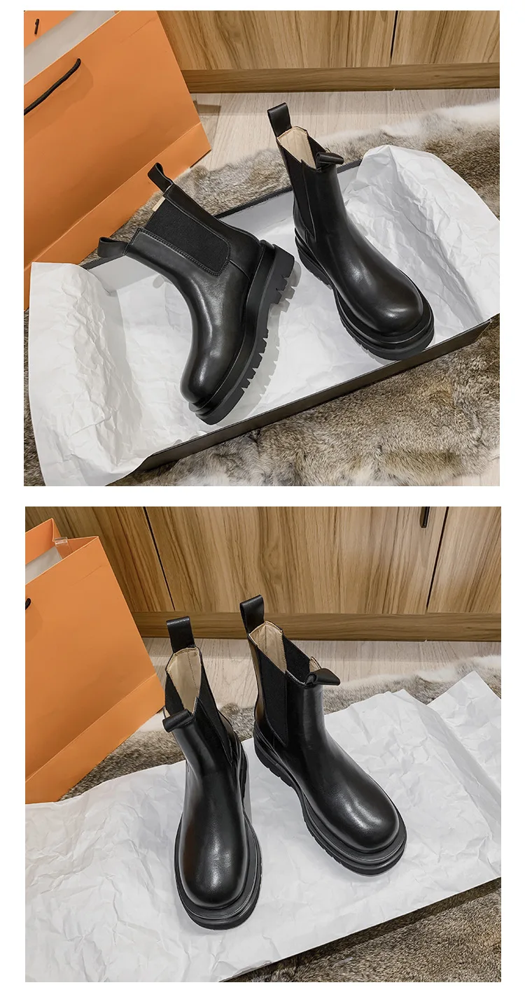 Женские ботинки челси на платформе, черные кожаные ботинки на масси...