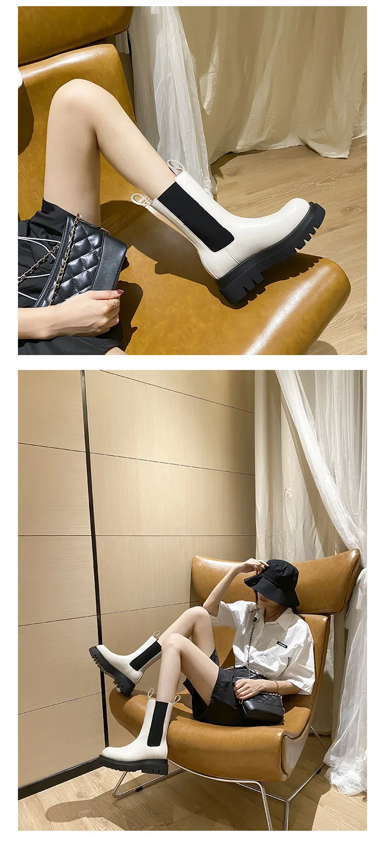 Женские ботинки челси из натуральной кожи на платформе, брендовые с...