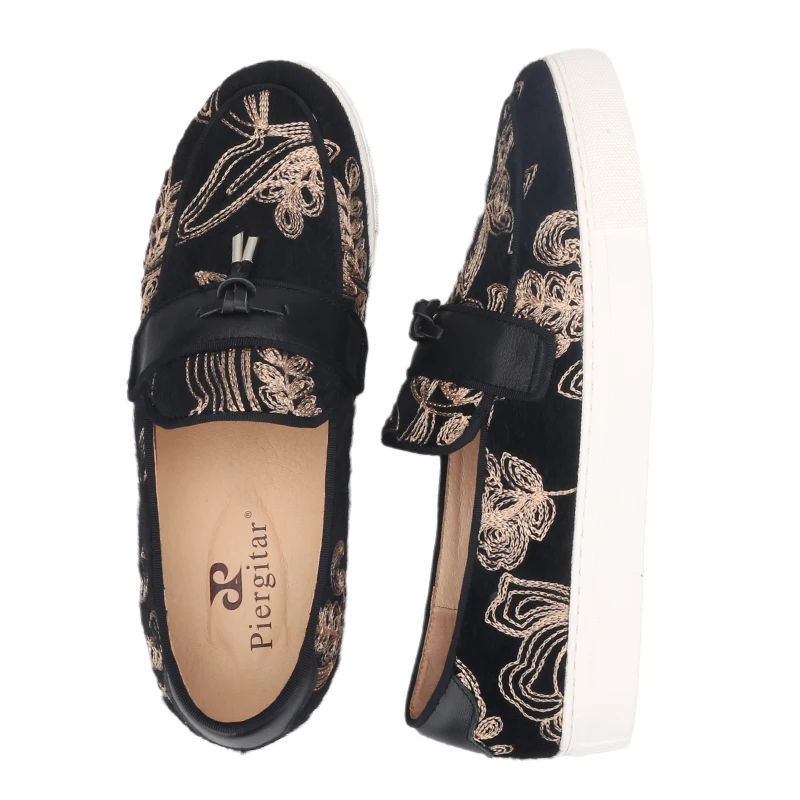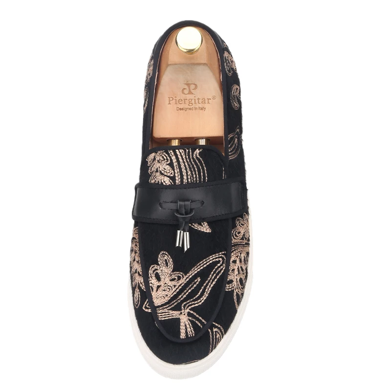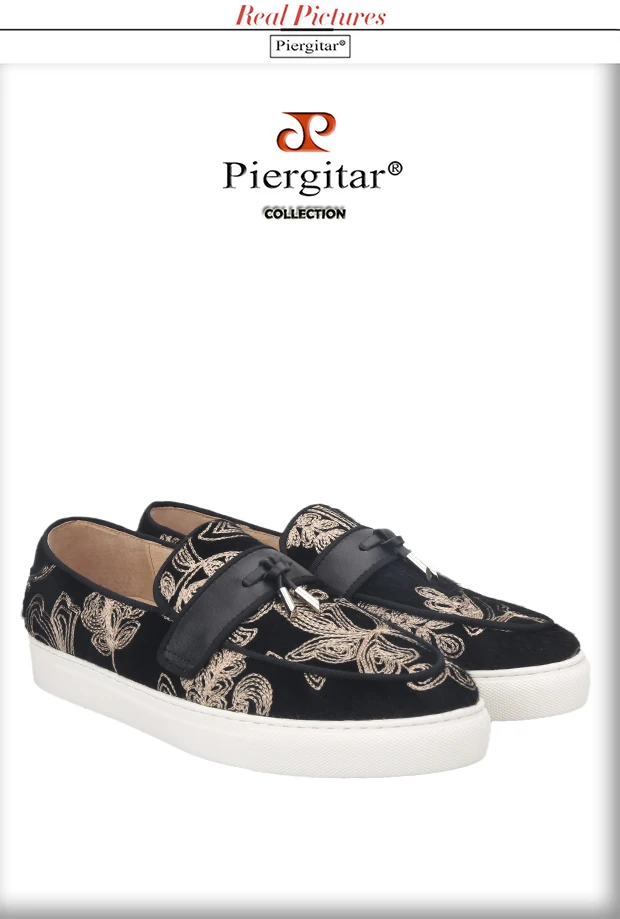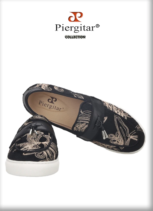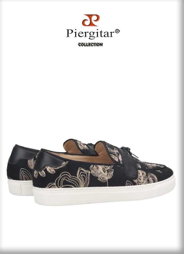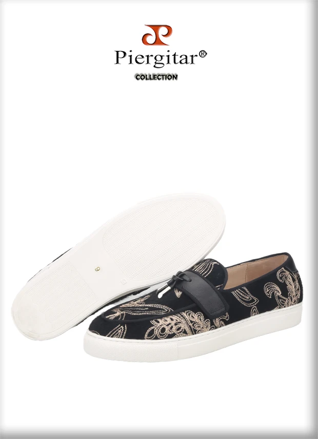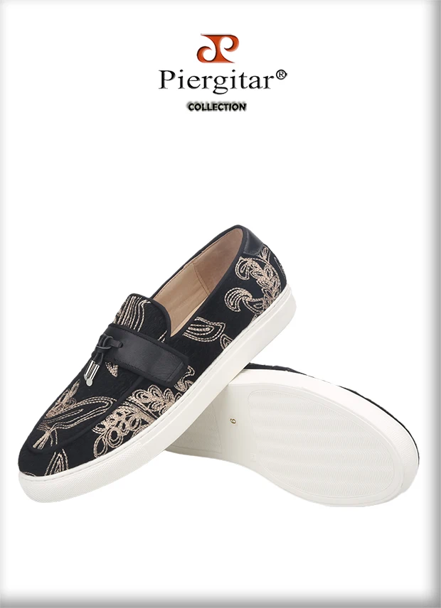 Кроссовки Piergitar мужские с вышивкой, черные, бархатные спортивны...