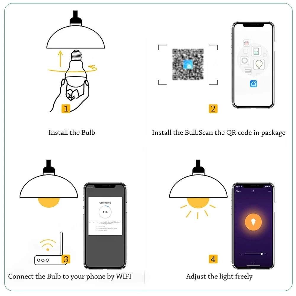 4 шт. 15 Вт 1800 лм WiFi Ampoule светодиодный E27 B22 умная лампочк...