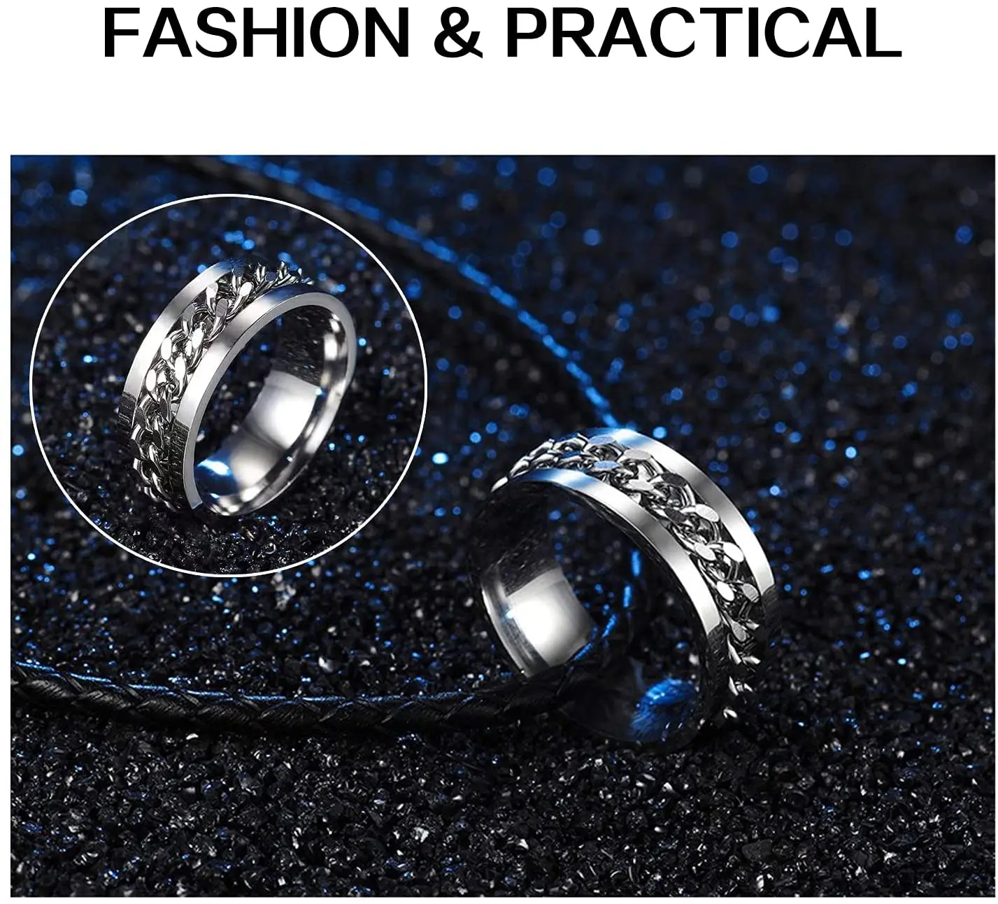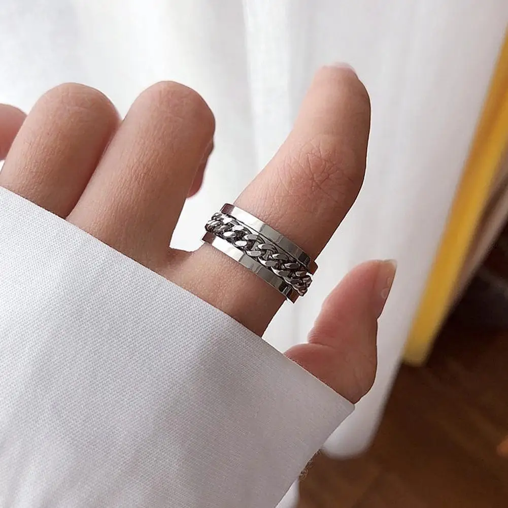 Кольцо-Спиннер для мужчин и женщин, вращающаяся цепочка из нержавею...