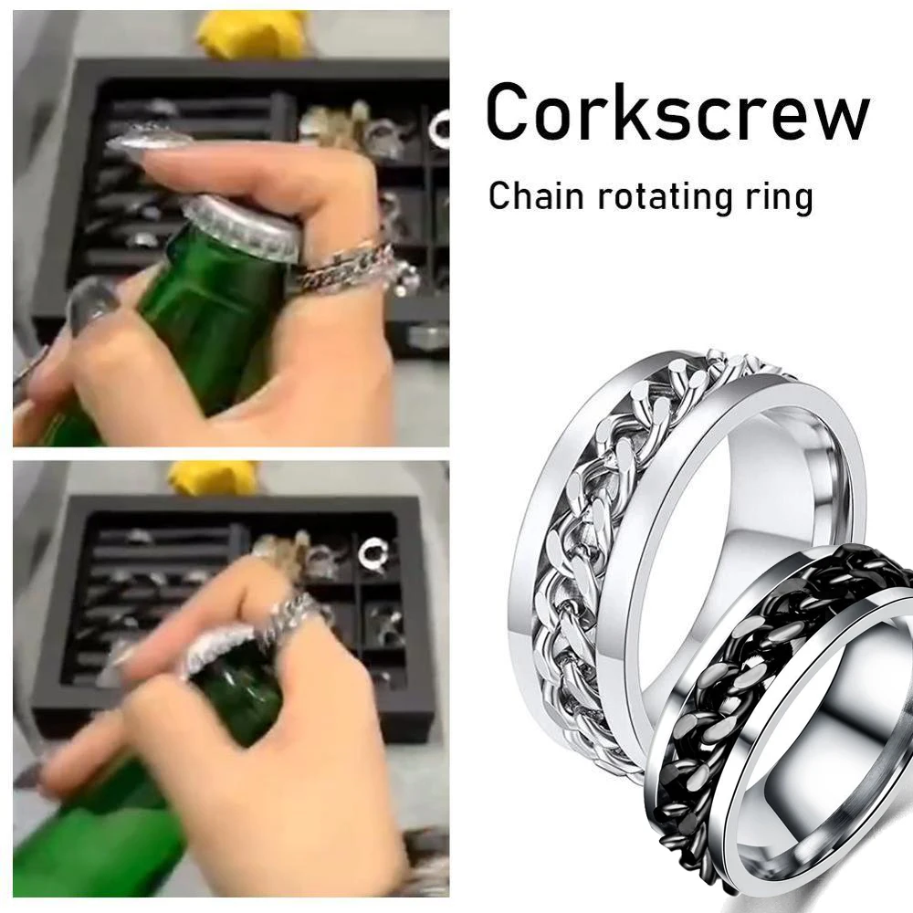 Многофункциональная стальная вращающаяся цепь, кольца, открывалка для бутылок, открывалка для пивных бутылок, стильный портативный Открыватель для бутылок, кольцо для женщин и мужчин