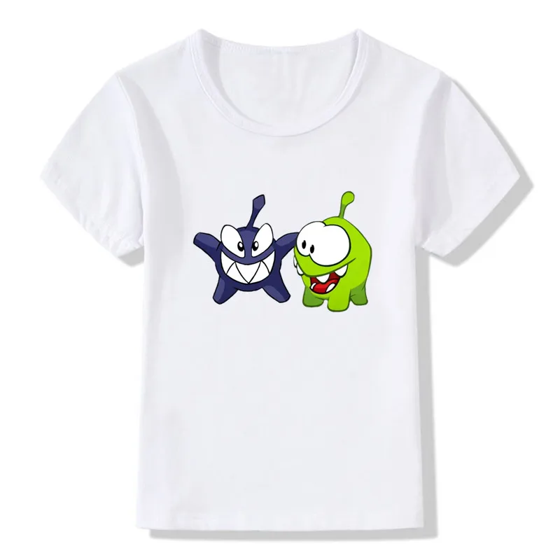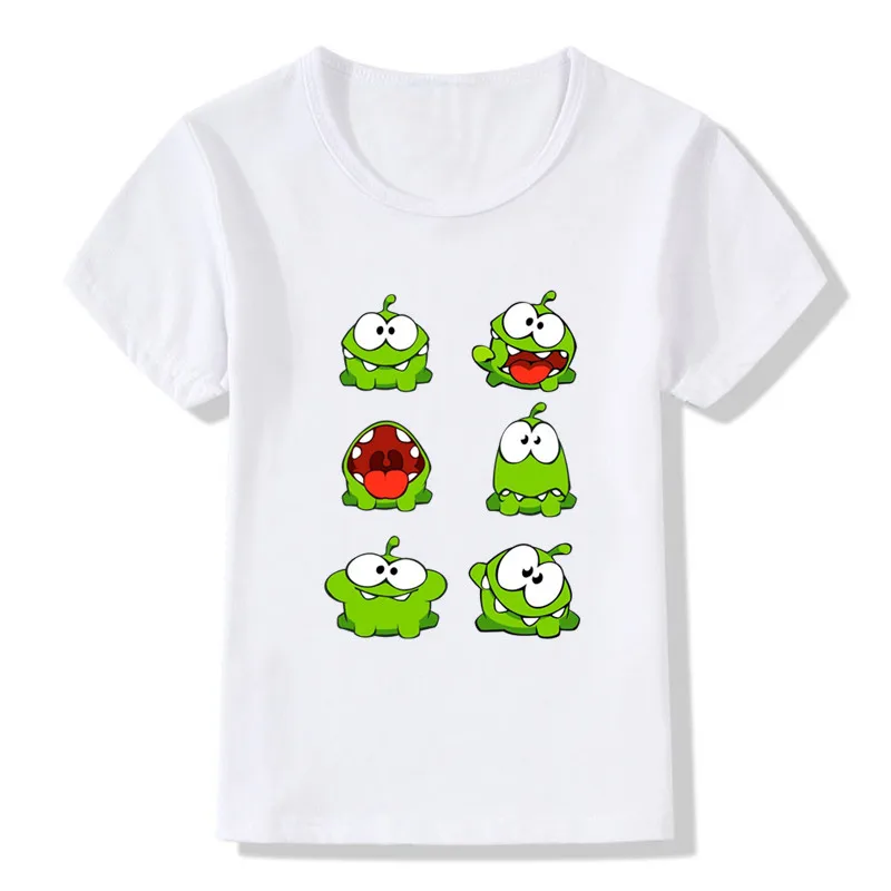 Лидер продаж 2021, детские футболки Om Nom Frog с принтом из мультфильма, для маленьких мальчиков и девочек, забавные детские топы