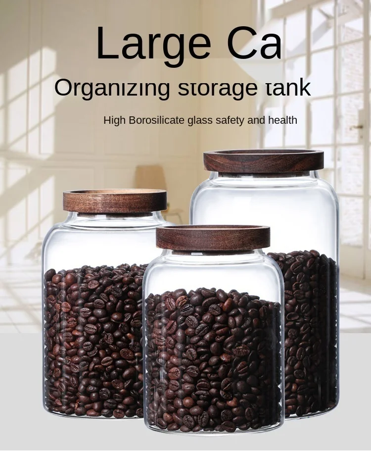 Герметичная банка с крышками, герметичная банка для хранения с деревянным покрытием, банка для хранения кофейных зерен, органайзер, кухонные контейнеры, большая емкость