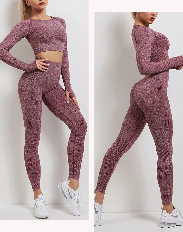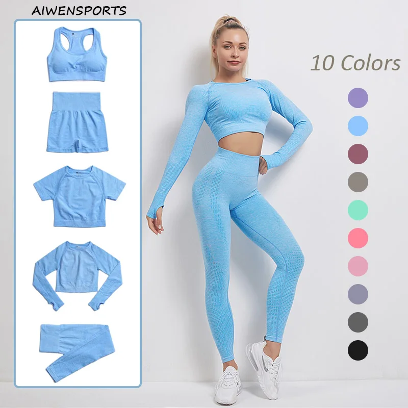 Женский бесшовный комплект для йоги, спортивные костюмы для фитнеса...