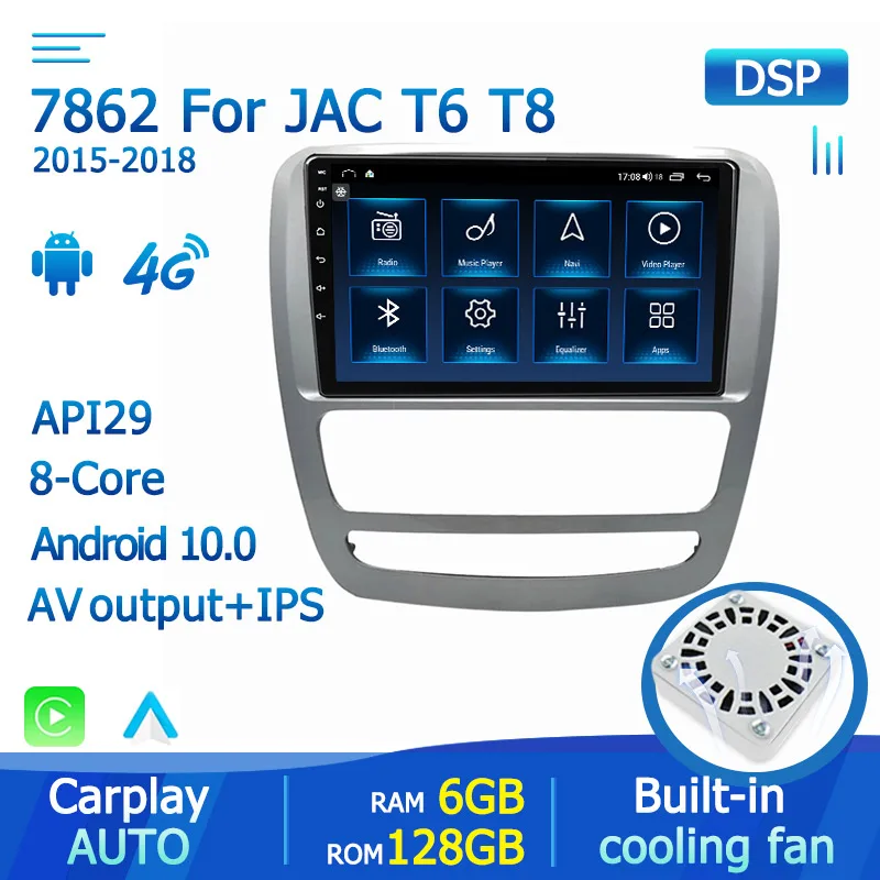 Автомагнитола TomoStrong на Android 10 для JAC T6 T8 2015 2016-2018 мультимедийный видеопроигрыватель BT Carplay 4G LTE DSP