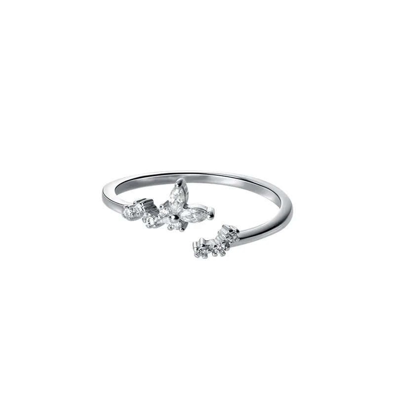 WANTME роскошное Открытое кольцо из стерлингового серебра 925 пробы с фианитами в виде ветки с листьями для женщин