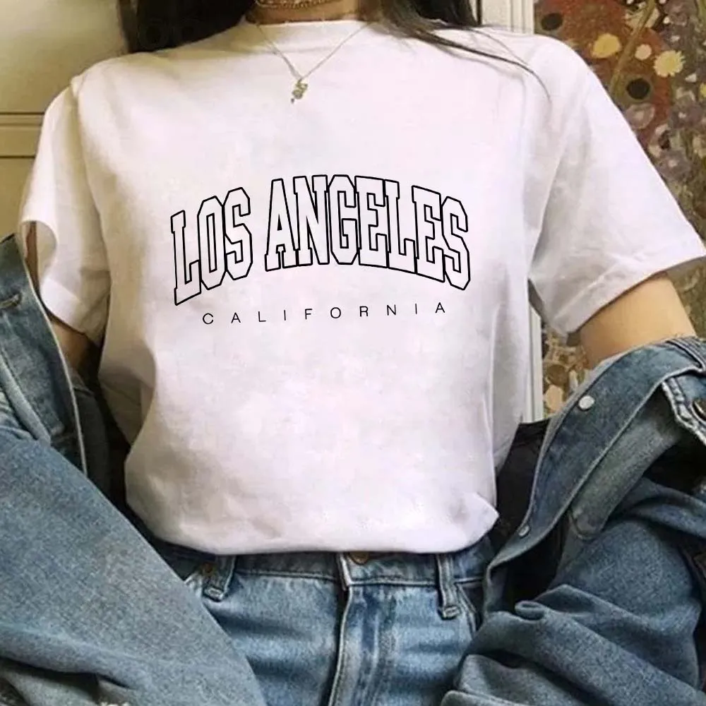 Женская футболка с надписью Los Angeles, летняя черная Винтажная Фу...