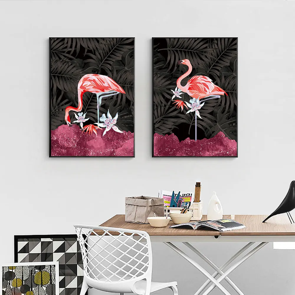 Постер в скандинавском стиле с животными красивый розовый Фламинго натуральный цветок на холсте Современная живопись художественная печать Настенная картина Декор для гостиной и дома