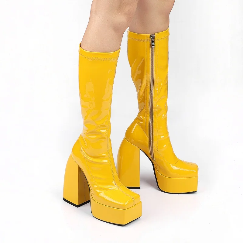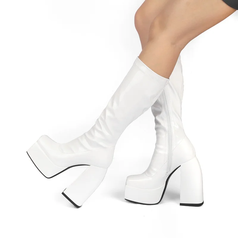 Женские сапоги выше колена на платформе и высоком каблуке, уличные ...