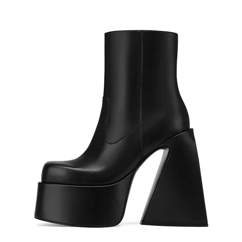Женские ботильоны из микрофибры, черные кожаные ботинки на платформ...