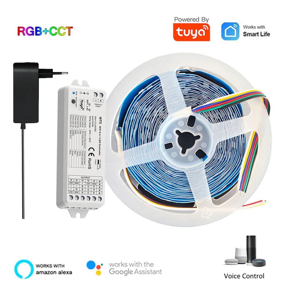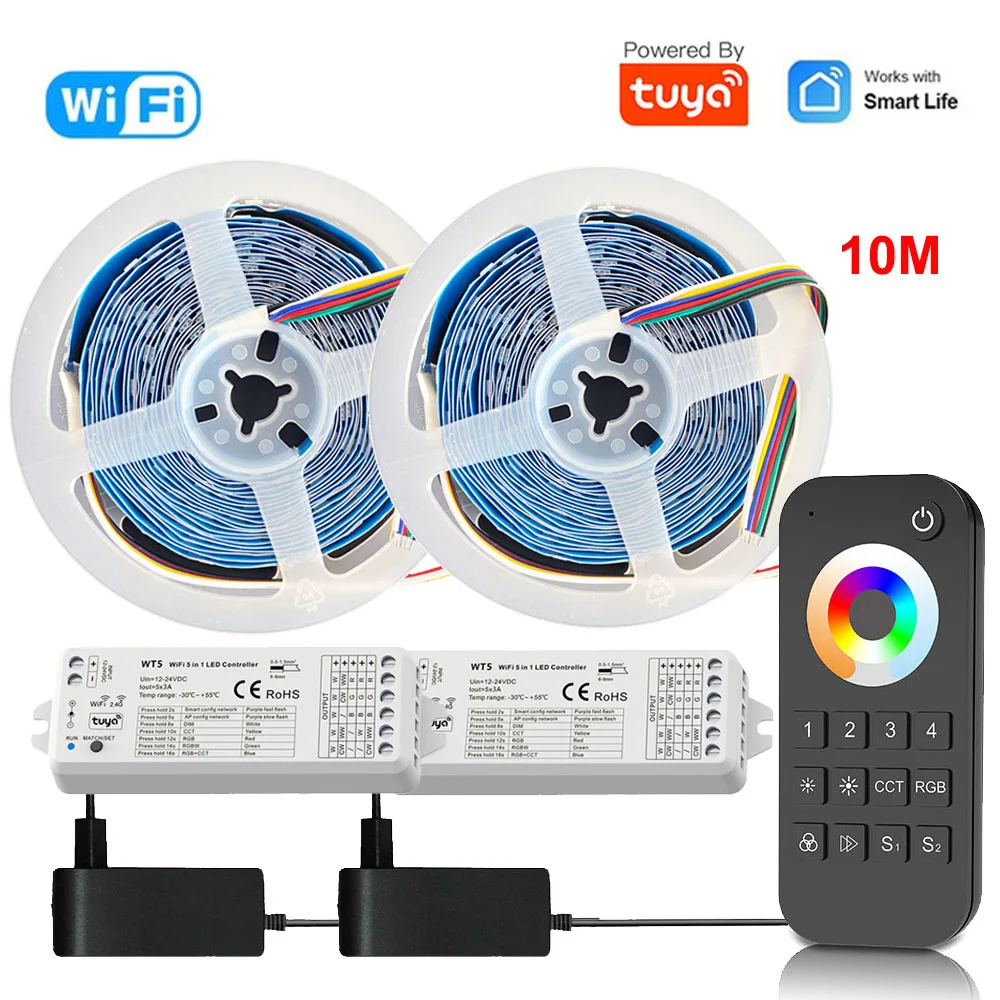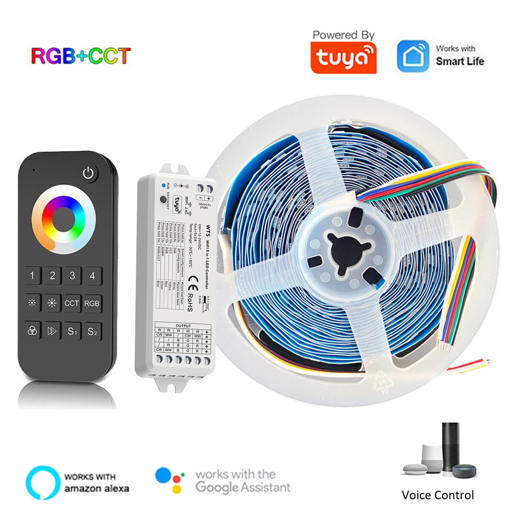 Гибкая беспроводная Светодиодная лента, 5 м, 10 м, Wi-Fi, RGBCW, 12 В, 5050 RGB + CCT светильник 2,4G, дистанционное управление через приложение, Echo, Google Home, голосовое управление