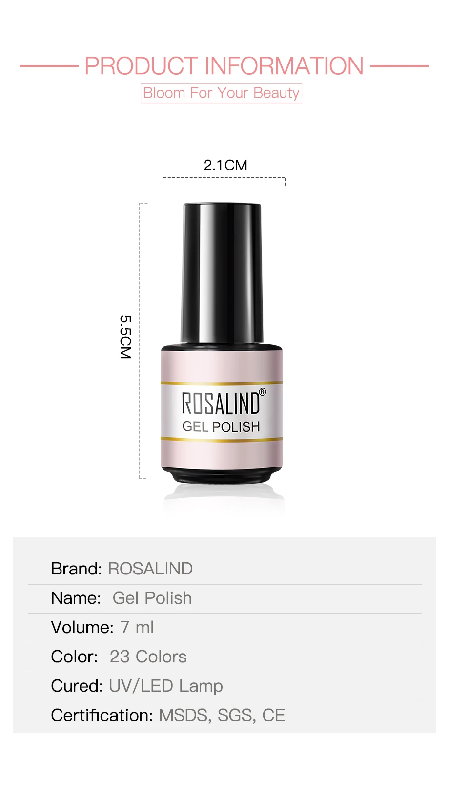 Характеристики Товара:Бренд: ROSALINDНазвание: чистый цветной гельОбъем: 7 млИзлеченная: УФ/Светодиодная лампа-Качество-наш первый приоритет.-Светильник, почти без запаха (только верхнее покрытие и основа имеют умеренный запах), мы применяем только органическую текстуру для защиты вашего здоровья.-Цвет будет сиять до 30 дней.-Цвета на выбор, подходят для всех случаев.Шаг за шагом:-1. Форма ногтя. Слегка смочите поверхность ногтевой пластины. Дезинфицировать.-2. Нанесите базовый слой основы от кутикулы до свободного края (не забудьте запечатать край ногтя). Высушите ногти под светодиодный светильник в течение 10 секунд или УФ-светильник в течение 2 минут.-3. Нанесите тонкое пальто отмачиваемого геля на выбор. Свободный край крышки. Лечение: 30 секунд в светодиодный светильник, или 2 минуты в УФ-лампе.-4. Повторите 2-е тонкое покрытие отмачиваемого гель-лака на ногти. Высушите под светодиодный лампой в течение 30 секунд или УФ-светильник в течение 2 минут.-5. Нанесите верхнее пальто. Свободный край крышки. Лечение: 30 секунд в светодиодный светильник.-6. Удалите липкий остаток на ногтях с помощью очищающего средства. Затем нанесите питающее масло кутикулы для увлажнения влаги в кутикулу и кожу вокруг ногтя.Для удаления:-1. Отмачивайте ногти в акриловом удалителе в течение 5 минут.-2. Аккуратно Наденьте на каждый ноготь всю эмаль для ногтей.Внимание:1. Объем-7 мл. Поскольку емкость бутылки составляет более 7 мл, гель для ногтей не будет полностью заполнен бутылкой!2. Плотно закрываются. Держите подальше от солнечного света. Хранить в недоступном для детей месте.