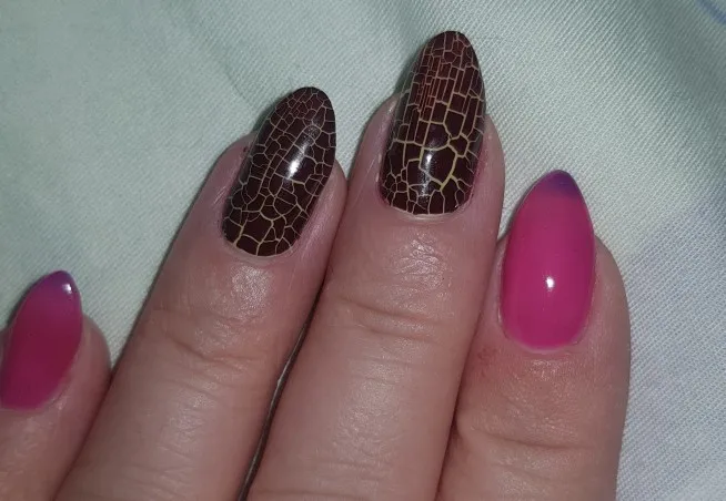 заказала 4.10 пришёл 20.11, ну ооочень маленькие пузырьки, но лак клёвый, сохнет на воздухе, трескается самостоятельно)) работать верхним слоем необходимо очень быстро,т.к. быстро сохнет, даже если в процессе получились разводы или полосит, не переживай, он всё растрескает. Обязательно покрыть топом, иначе есть вероятность , что он будет осыпаться. цвет верхний А631, подложка R2041 с продавцом не общалась