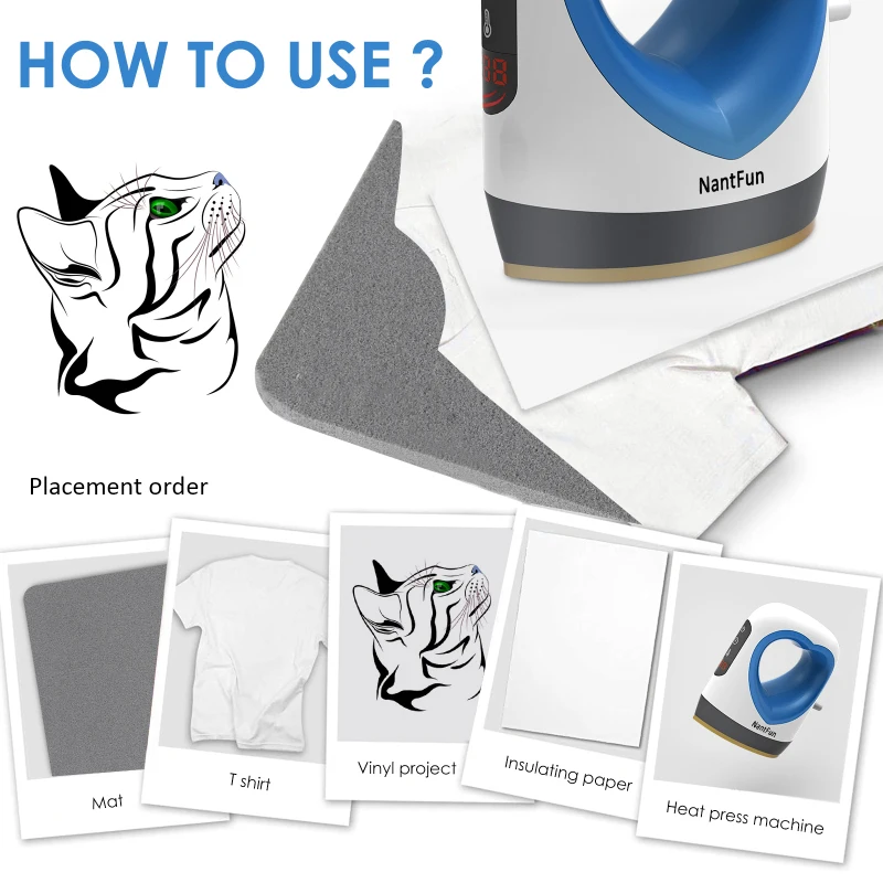 [Простое управление и мобильное горячее тиснение]: очень подходит для HTV передачи винила, вспышки, копировальной бумаги и т. д. просто откройте его, чтобы сделать виниловую наклейку на футболку или другие предметы. Для большой области горячего тиснения, нужно только медленно перемещать машину, чтобы равномерно нагревать ее, чтобы завершить большой дизайн.