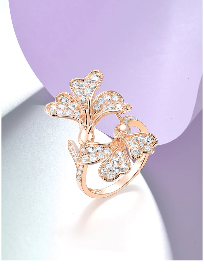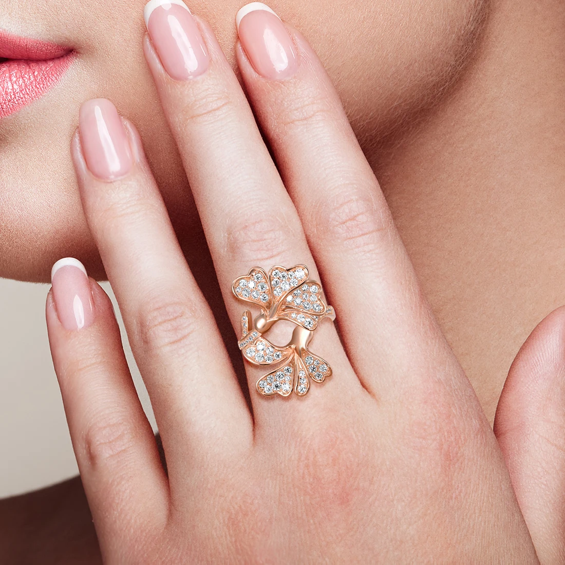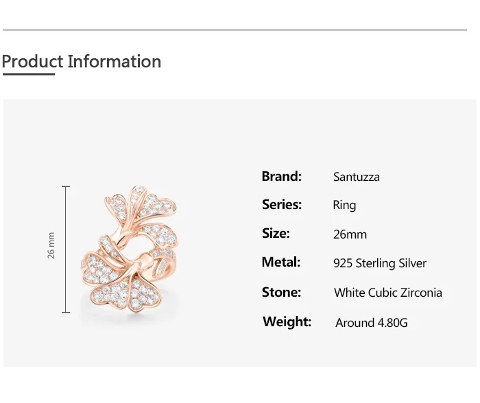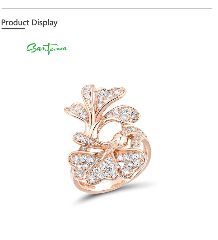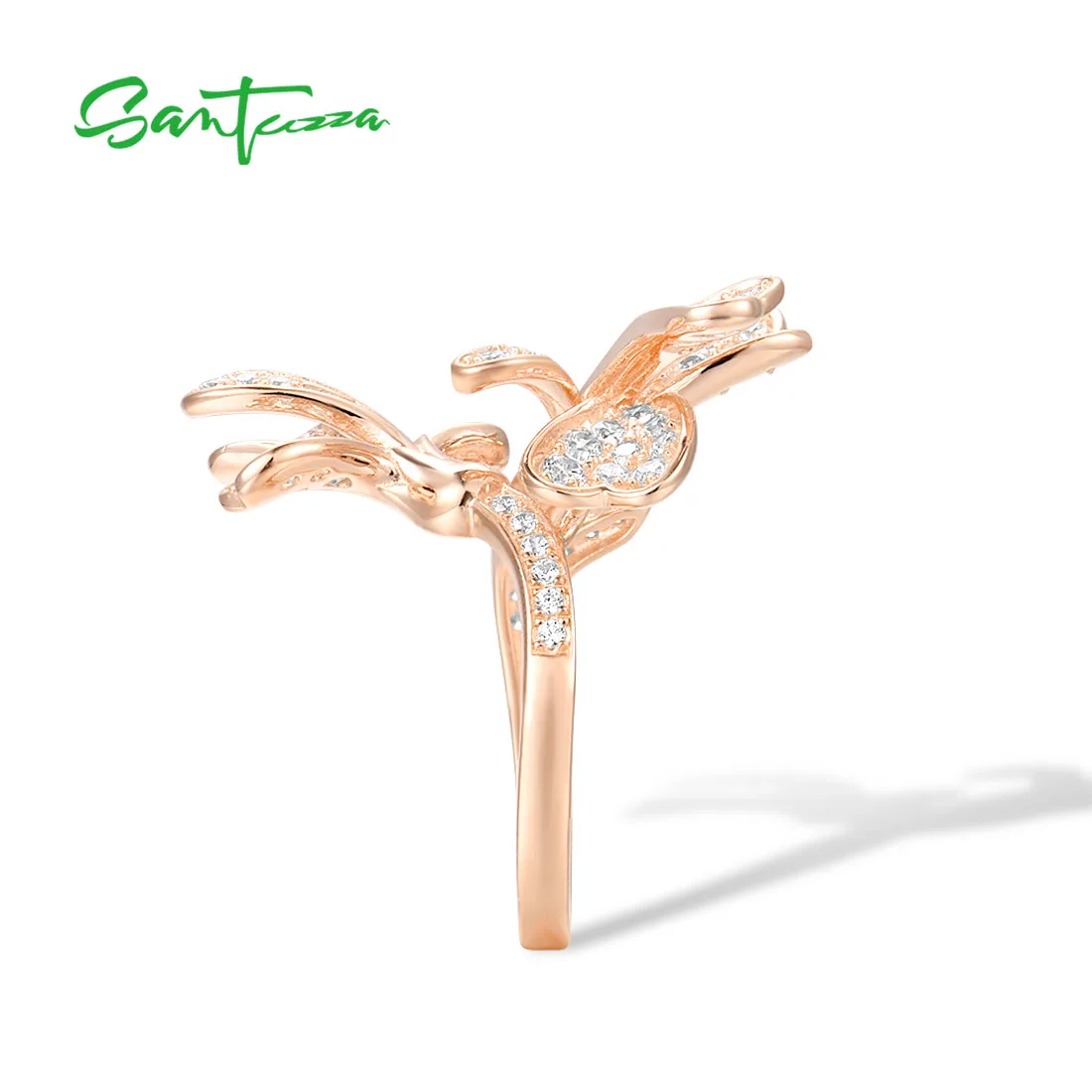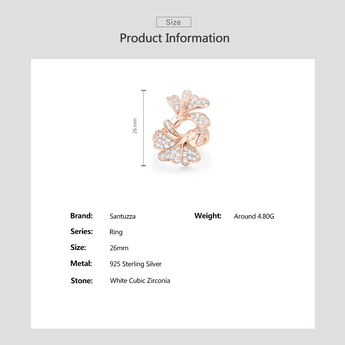 Женское серебряное кольцо SANTUZZA, из серебра 925 пробы с белым кубическим цирконием, с цветком розового золота, модные ювелирные украшения