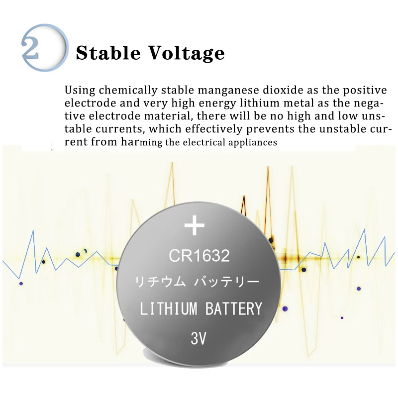 Особенности:Герметичность: никелированная нержавеющая сталь, прочное уплотнение, защита от короткого замыкания, защита от протечекБез ртути: без добавления ртути или других вредных веществ, здоровая и экологически чистая.Долговечность: обновление микросхем, каждый из них прочный и стабильный разряд.Широкое применение: пульсометр, часы, камеры, калькуляторы, Автомобильная охранная сигнализация, автомобильные пульты дистанционного управления без ключа, органайзеры, глюкометр, компьютерное оборудование (резервная батарея памяти) CMOS, игрушки, коммуникационное оборудование, пакет данных для видеокамер и других устройств, требующих этого размера батареи......Характеристики:Тип батареи: батарея CR1632 3 в, литиевая батарейка BR1632 для монетБренд: CUNVAEХимия: батарея LiMnO2Номинальное напряжение: 3 вПредельное напряжение: 2,0 вНормальная емкость: 120 мАчПостоянный ток: 2 мА (максимум)Импульсный ток: 15 мА (максимум)Максимальный размер: 16,0x3,2 ммТемпература: от-40 до + 60 градусов ЦельсияТакже можно назвать: CR1632, DL1632, ECR1632, LM1632, 1632, KCR1632, BR1632, KL1632, L1632, ECR1632, KECR1632Внимание:1. Стиль и цвет бумажной карты могут отличаться от изображений, если вы возражаете, пожалуйста, не делайте заказ!2. Вставьте аккумулятор в правильном направлении и избегайте короткого замыкания!3. Храните аккумуляторы в сухом и прохладном месте.4. Не перезаряжайте и не бросайте в огонь.