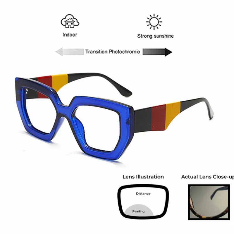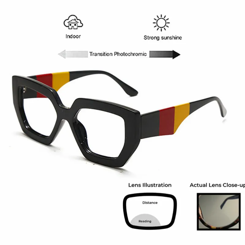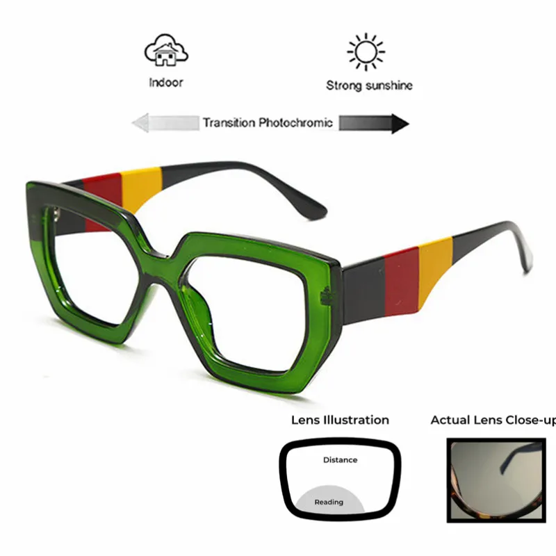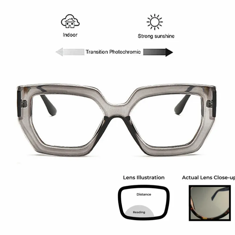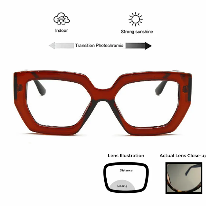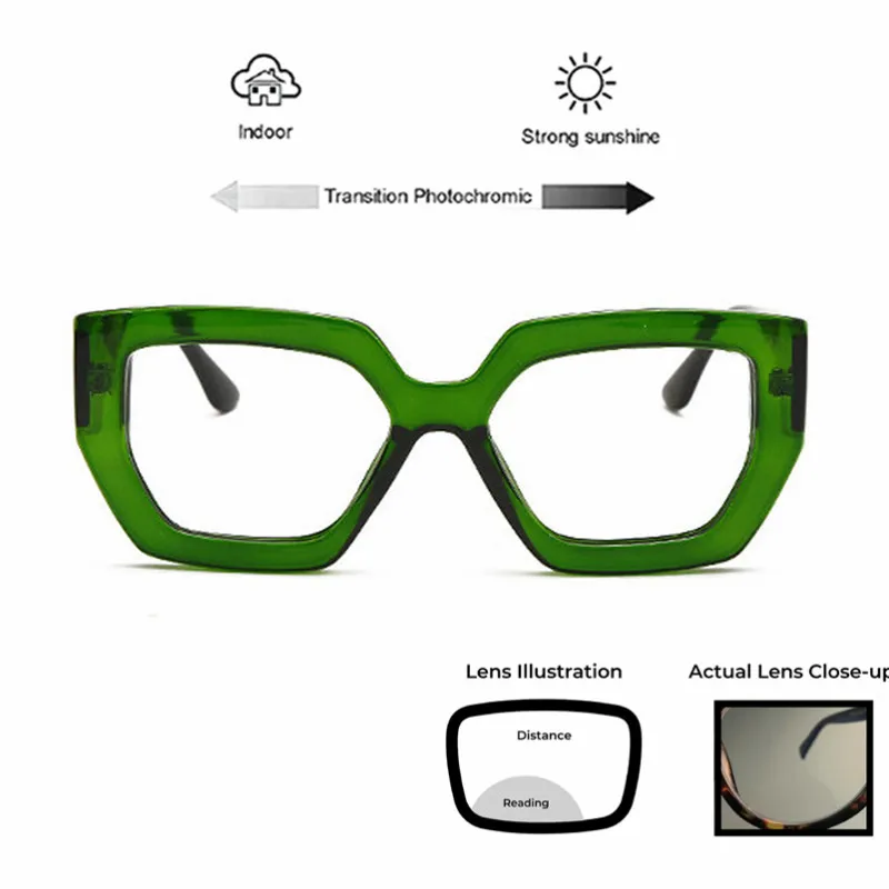 Квадратные уличные фотохромные бифокальные очки для чтения с переходом для женщин, защитные многофокальные солнцезащитные очки для вождения FML