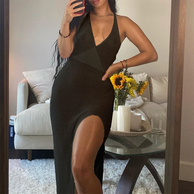 Женское пляжное платье макси, белое трикотажное Прозрачное платье с открытой спиной, лето, пикантное платье с разрезом