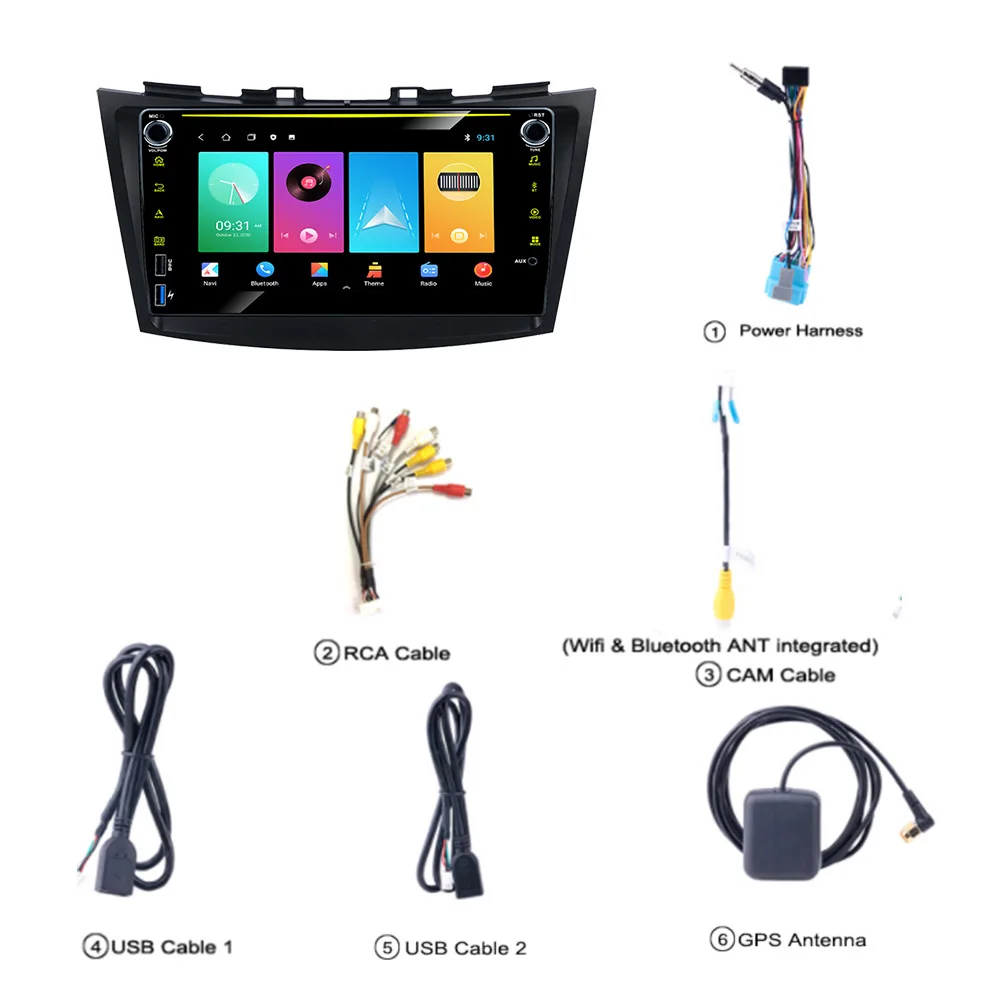 1 х Suzuki Swift Android автомобильное радио1 х Кабель питания1 x Антенна GPS1 x вход камеры1 х RCA вход и выход2 x USB кабельРуководство по эксплуатации-1 шт.