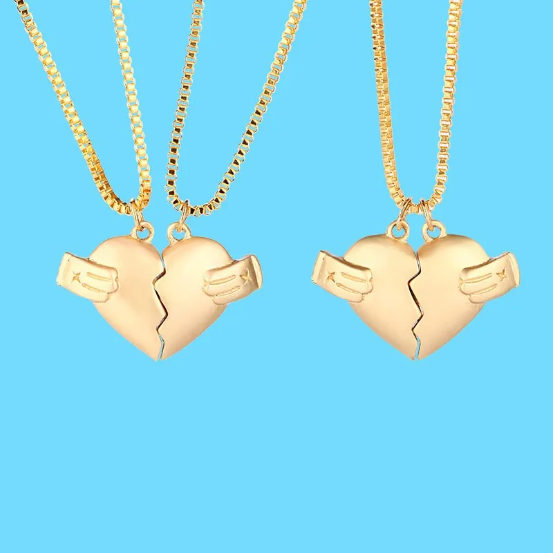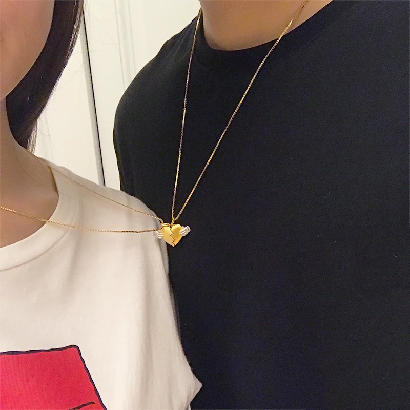 Магнитное ожерелье для влюбленных, 2 шт., кулон с разрывом в сердце...