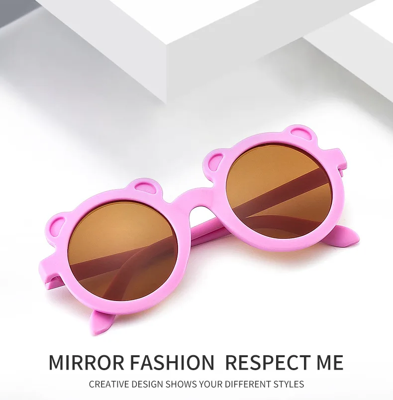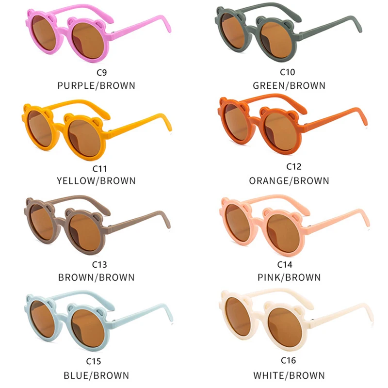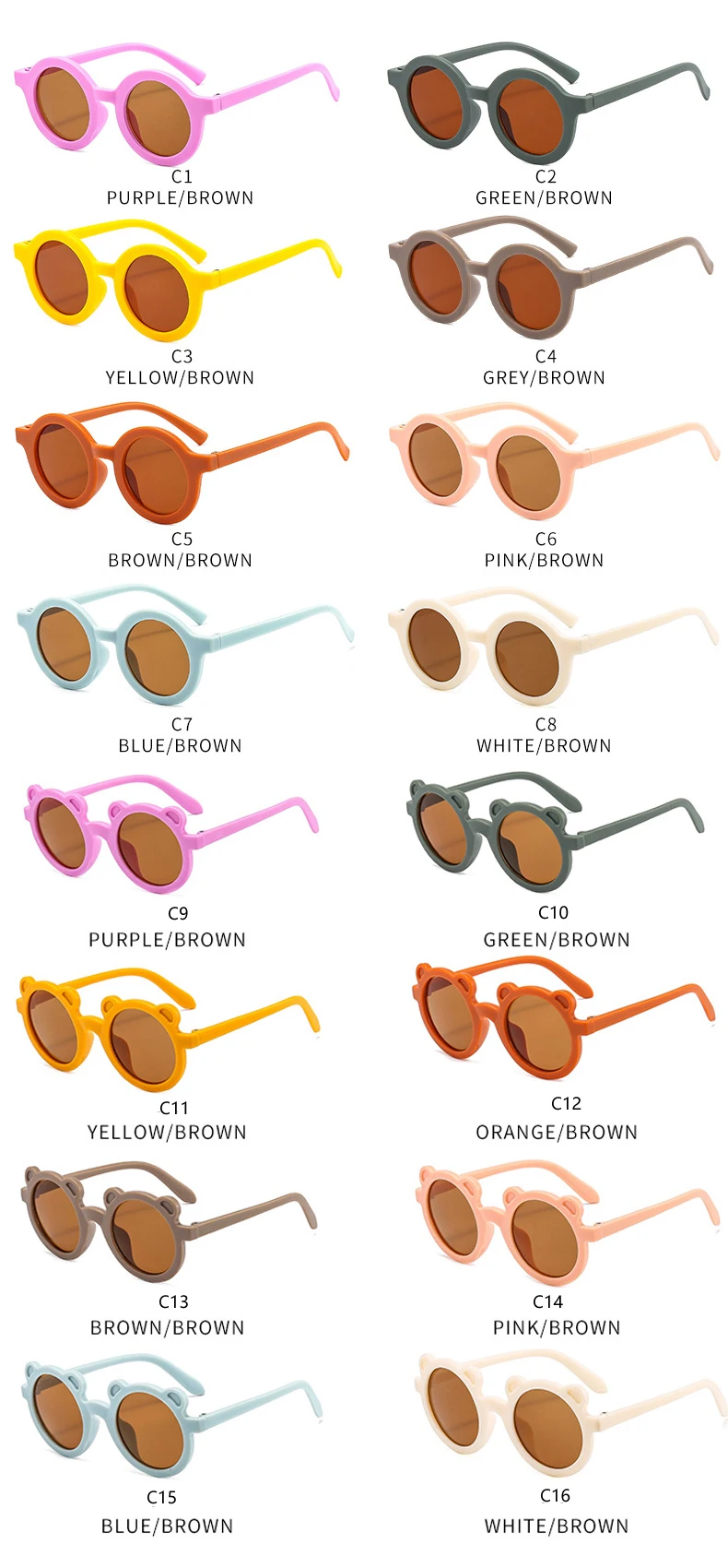 Круглые Солнцезащитные очки с сумкой для маленьких девочек, детские солнцезащитные очки 2021 с милым маленьким медведем, черные, розовые Красочные Солнцезащитные очки для детей, унисекс, UV400