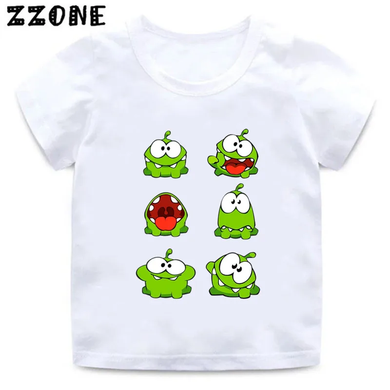 Лидер продаж, забавные детские футболки с героями мультфильмов Om Nom Frog для маленьких мальчиков, летняя футболка с коротким рукавом, детские топы, одежда для девочек