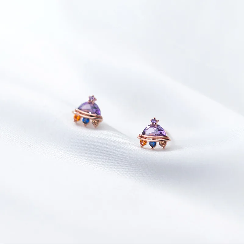 Женские серьги-гвоздики из серебра 925 пробы с радужным цирконием