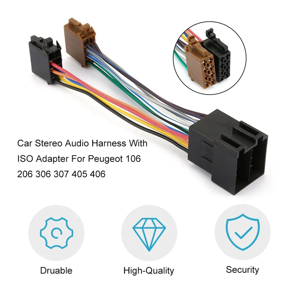 Автомобильная стереомагнитола с адаптером ISO прочная автомобильная проводка для Peugeot 106 206 306 307 405 406 607