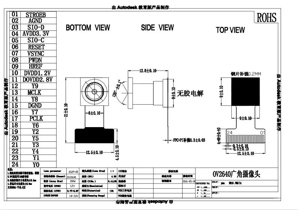 Модуль камеры OV2640 21 мм для ESP32-CAM, модуль камеры 30 66 120 160 градусов, 0,5 нм, ночное видение, 24 контакта, шаг мм
