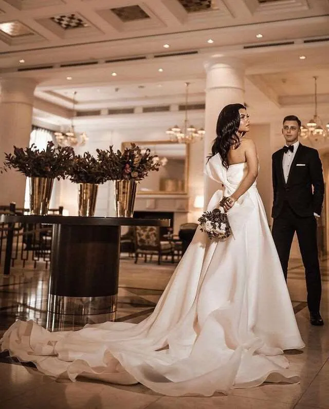 Verngo 2021 Новый Дизайн Шелковое атласное свадебное платье с длинн...