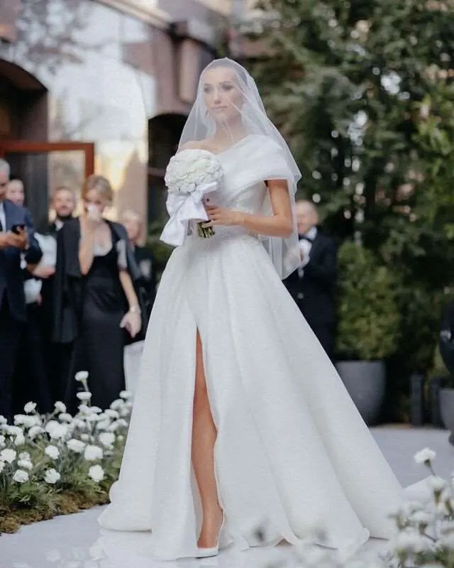 Женское свадебное платье в горошек, с открытыми плечами и шлейфом, ...