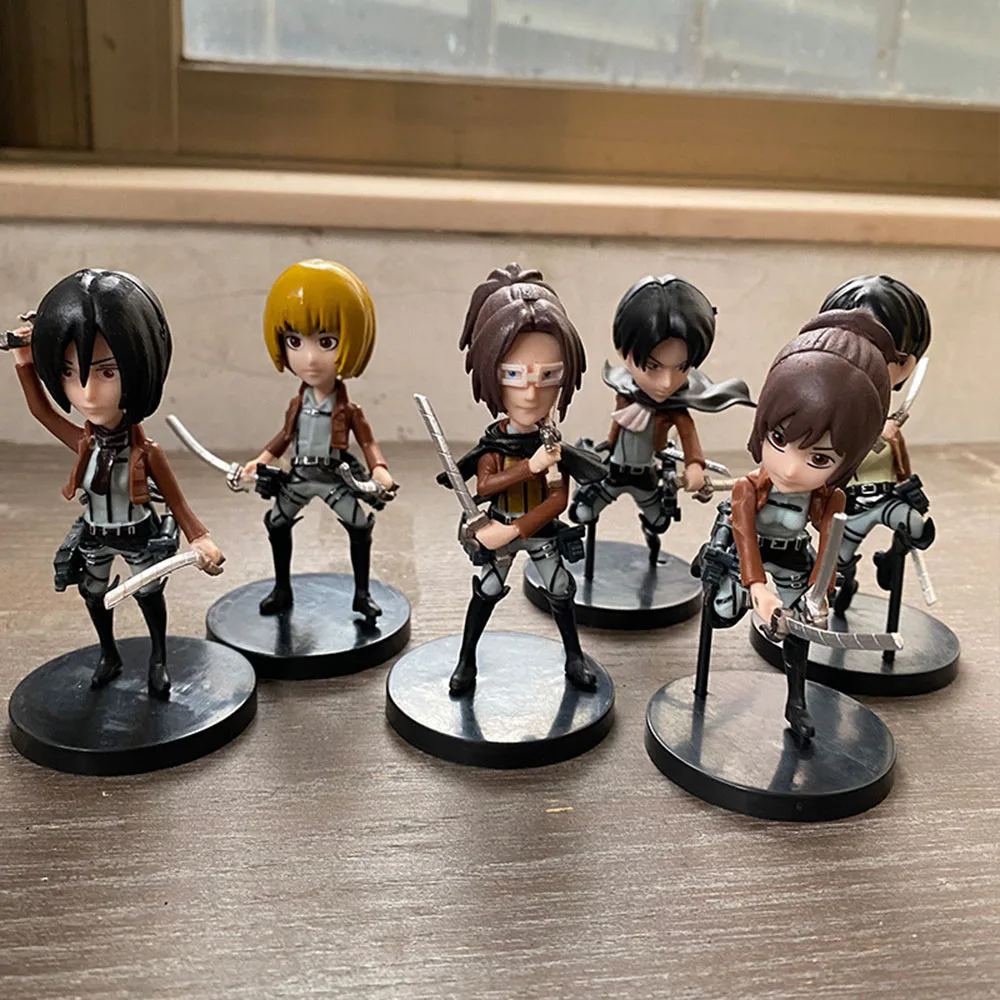 6 шт.компл. фигурка модели аниме атака на Титанов, экшн-игрушки для девочек, мальчиков, Автомобильные украшения, кукла, креативный сувенир, детский Декор, рождественский подарок